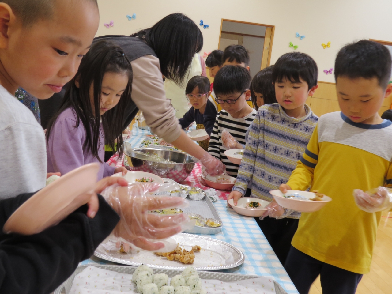 ★わかめおにぎり ★パン ★グラタン ★鶏のから揚げ ★マヨコーンサラダ ★ナムル