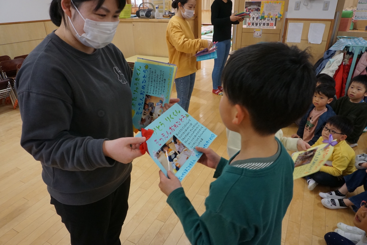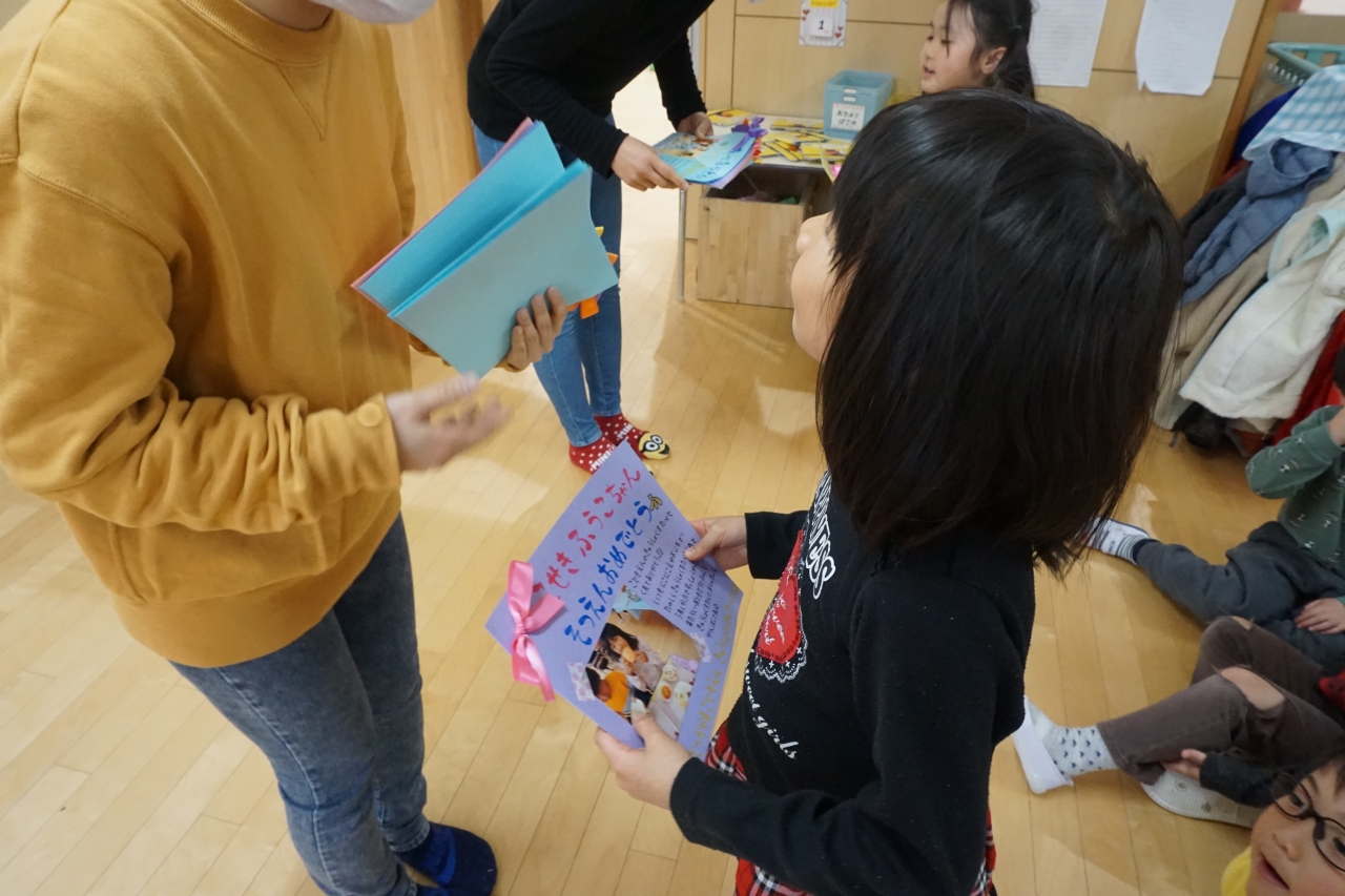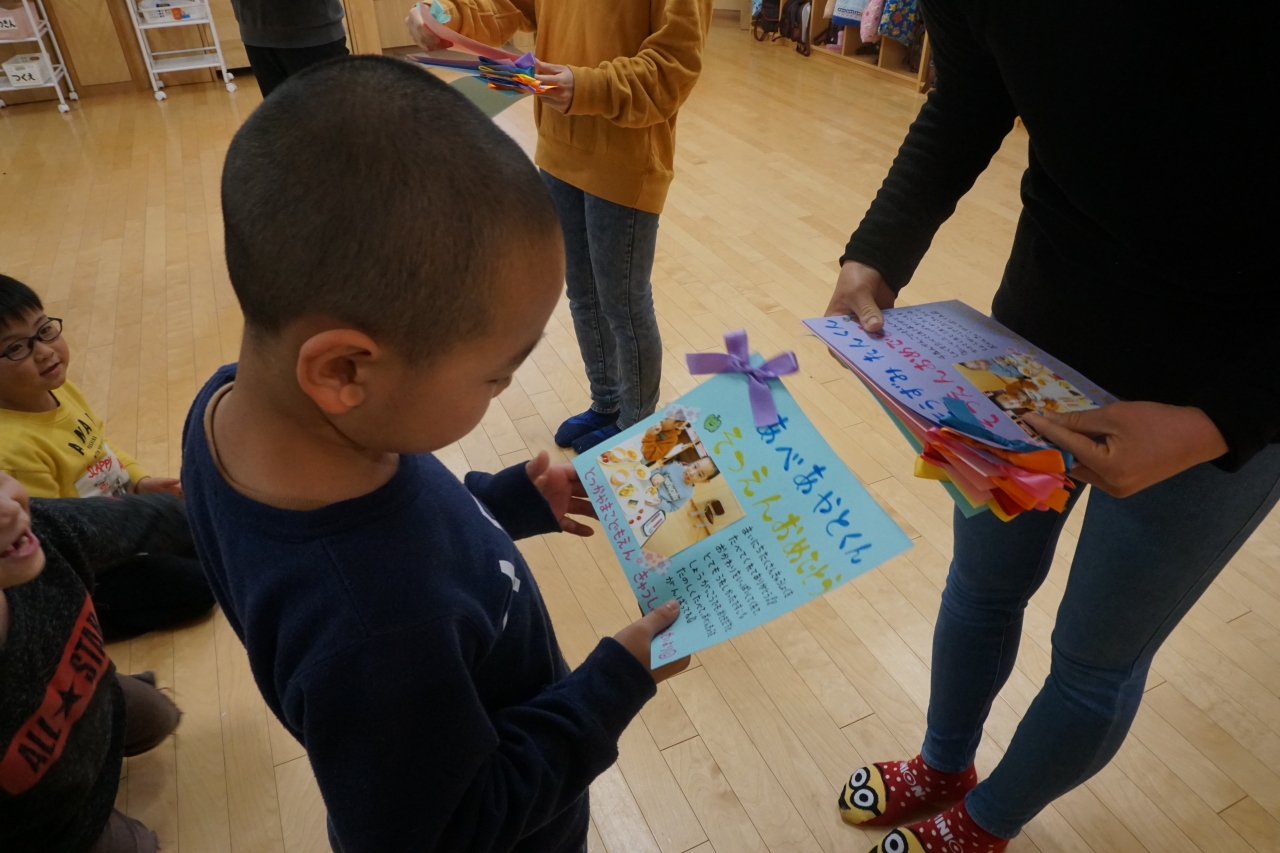 そして最後に年長さんには給食の先生から一人ひとり写真入りのメッセージのプレゼントが!!