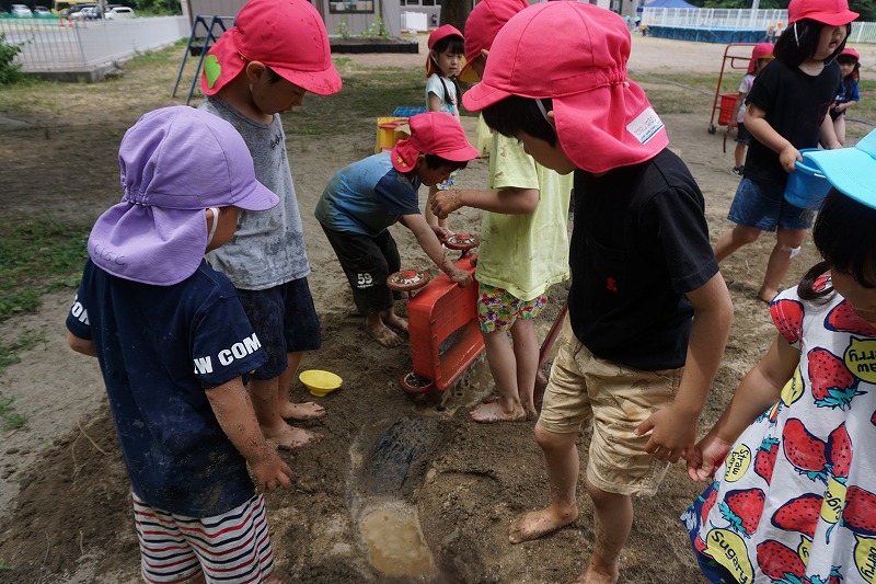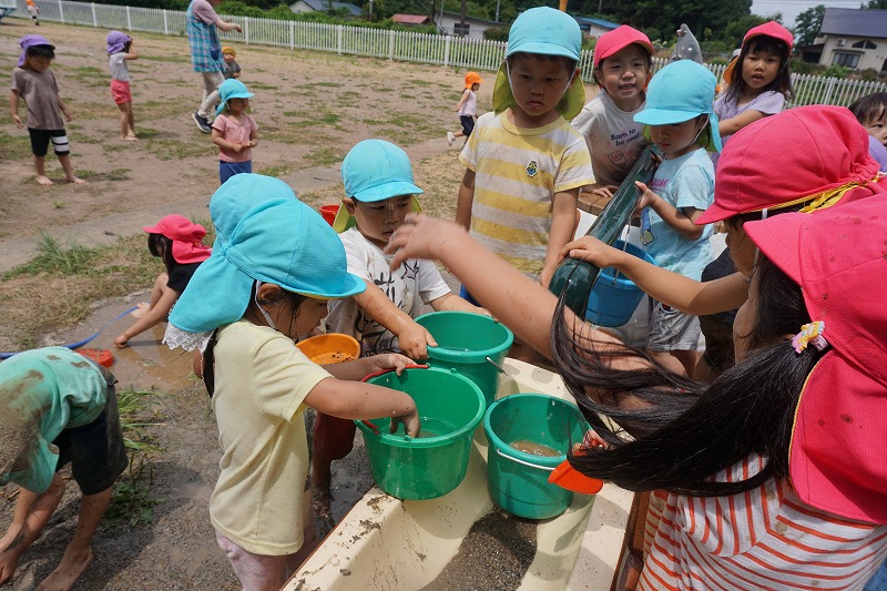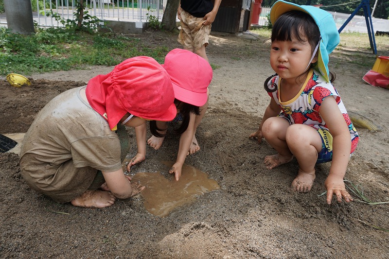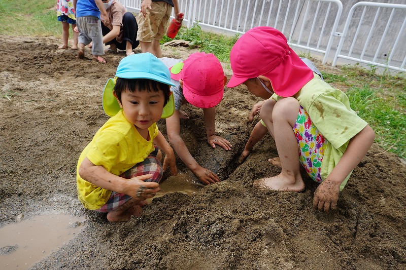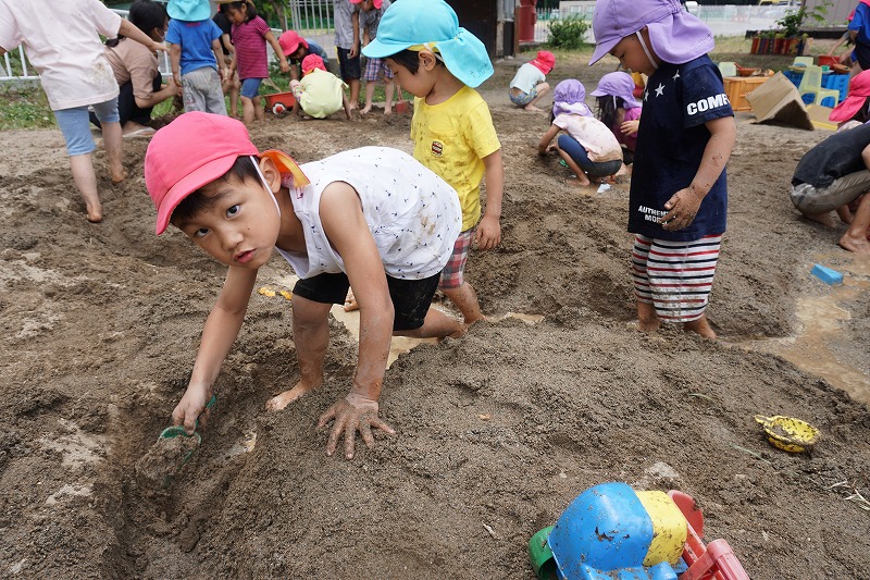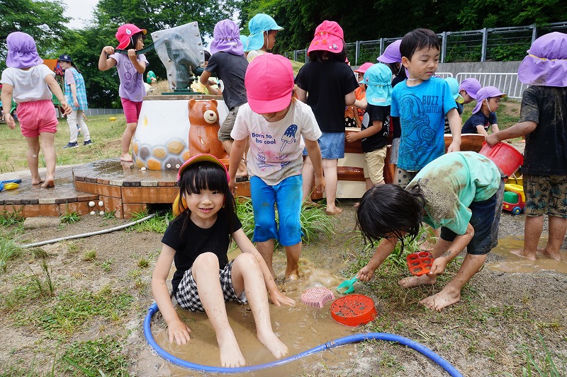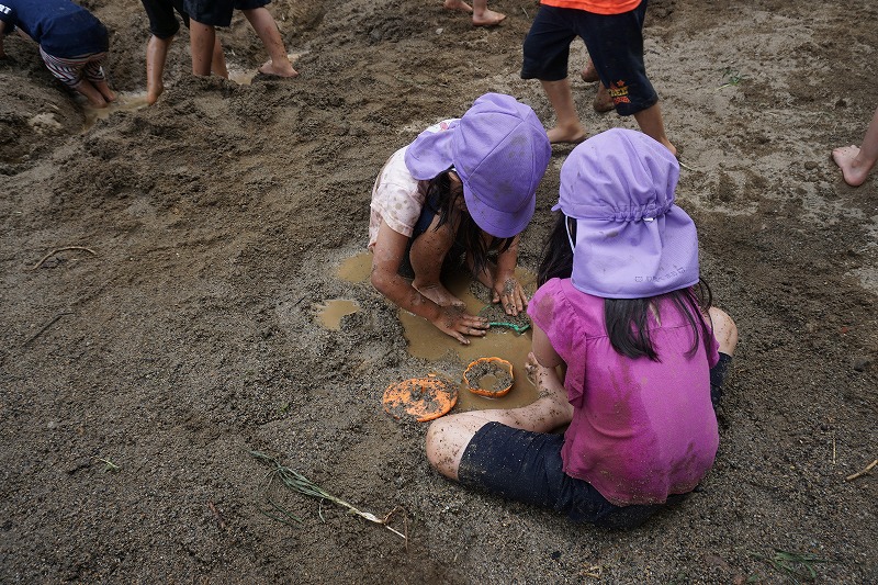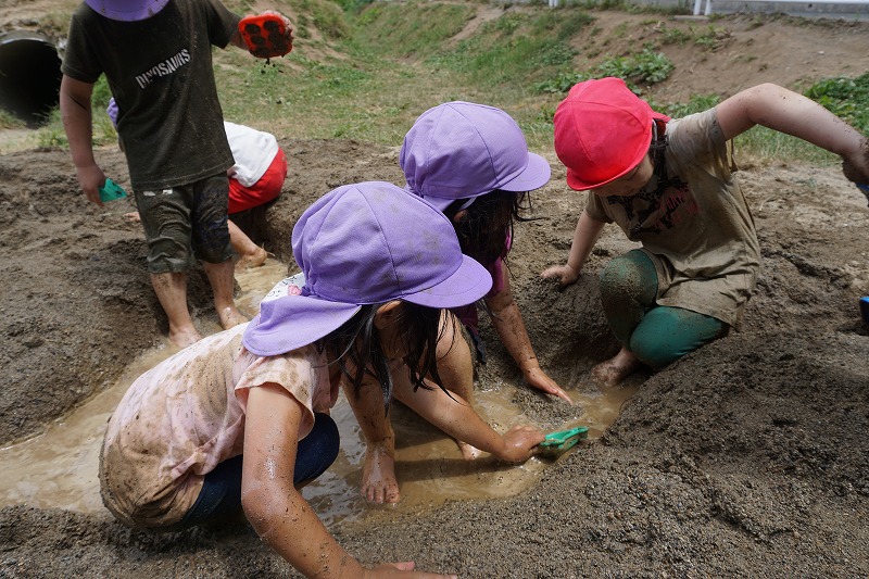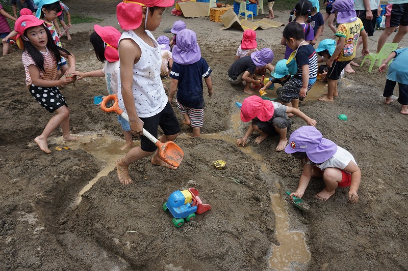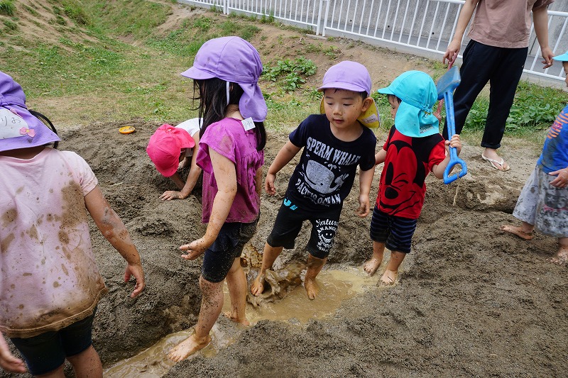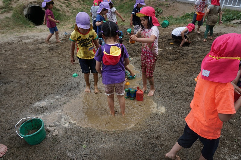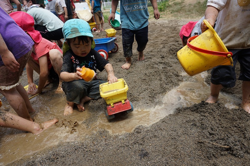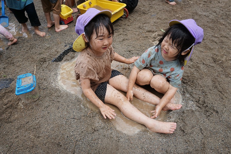 天気の良い日は、泥・水あそびを思いっきり楽しんでおります。