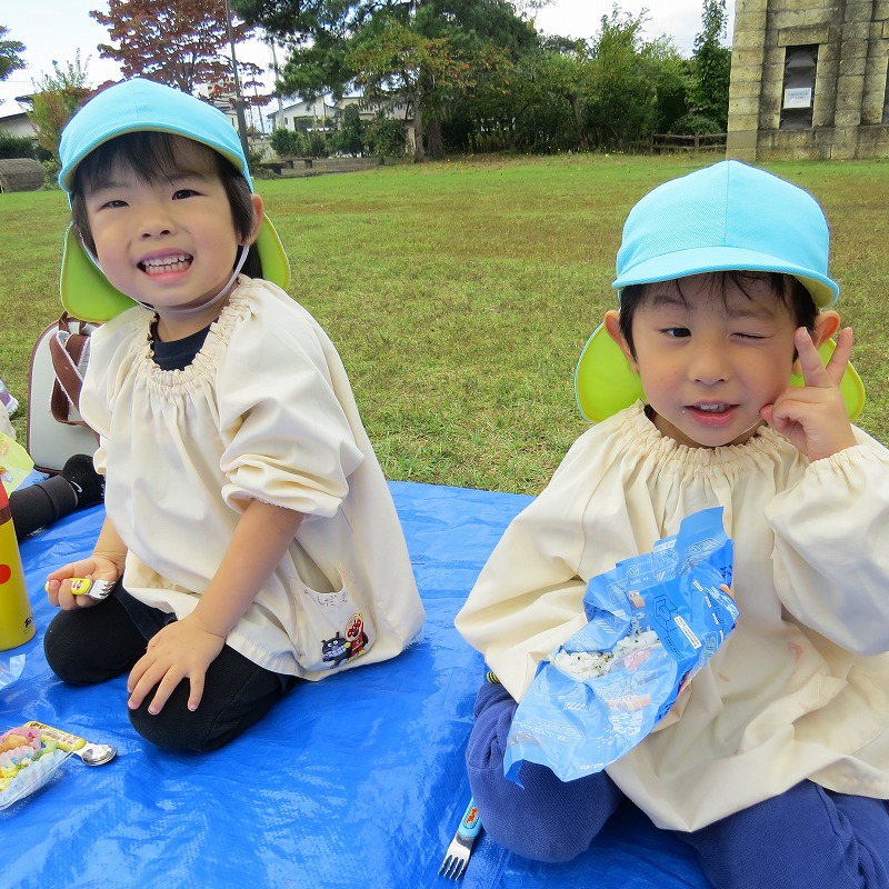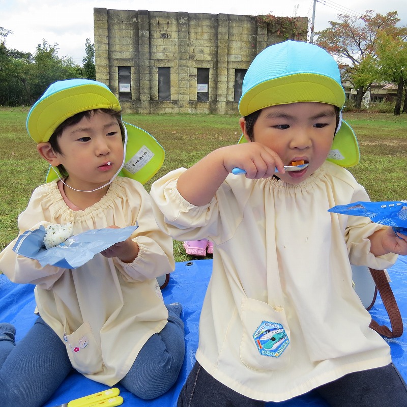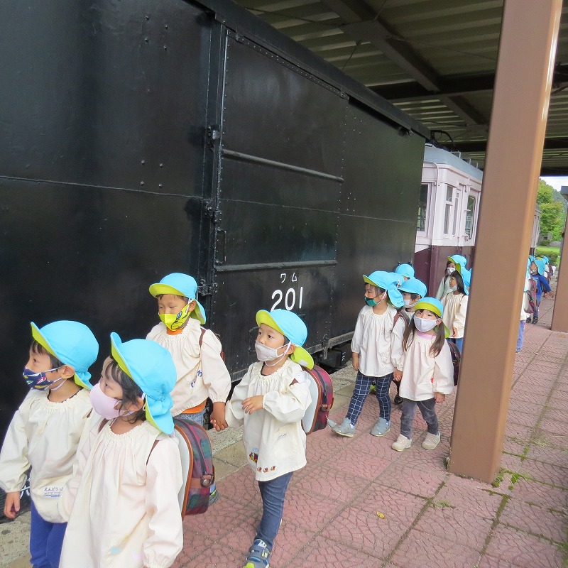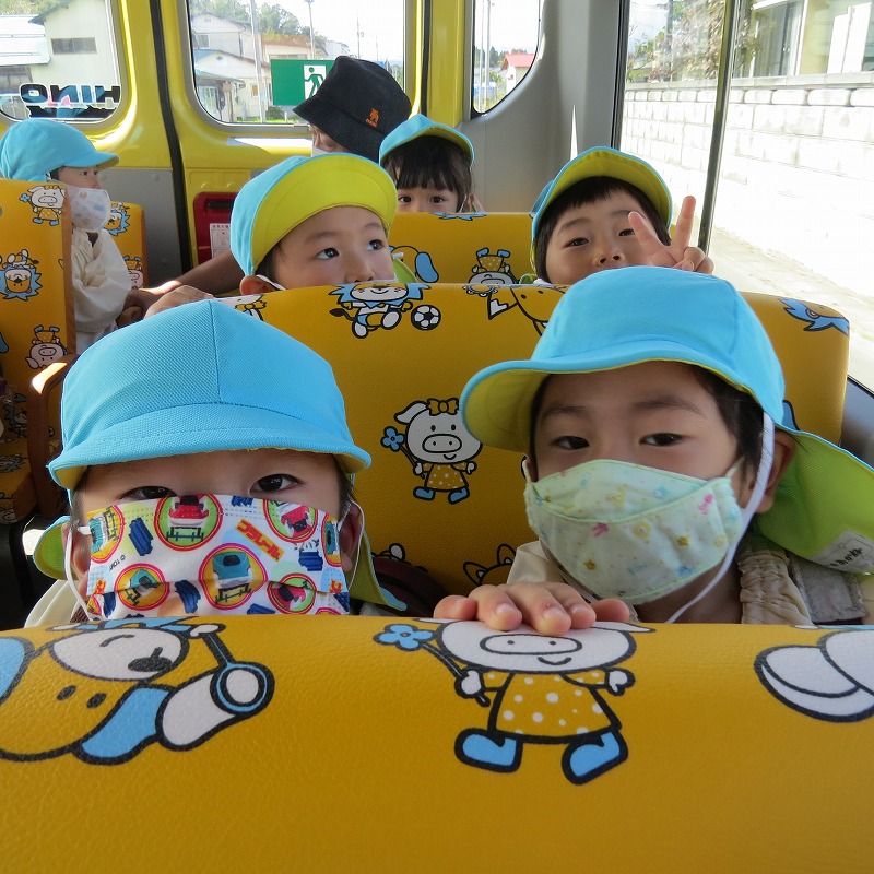 10月6日(水)高畠町の「旧高畠駅」に行ってきました。電車を見たり公園で遊んだり、まつぼっくりやどんぐりも拾ってきました。給食の先生が作ってくれたお弁当も外で食べて、とっても楽しい1日でした!