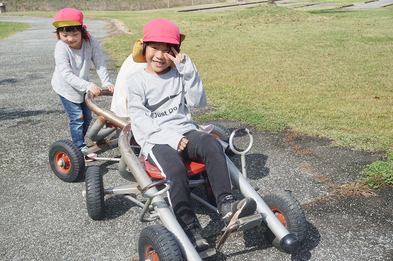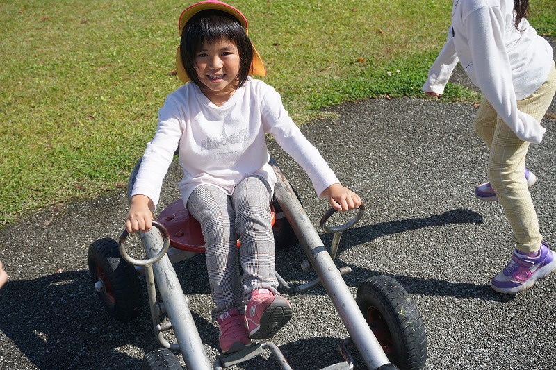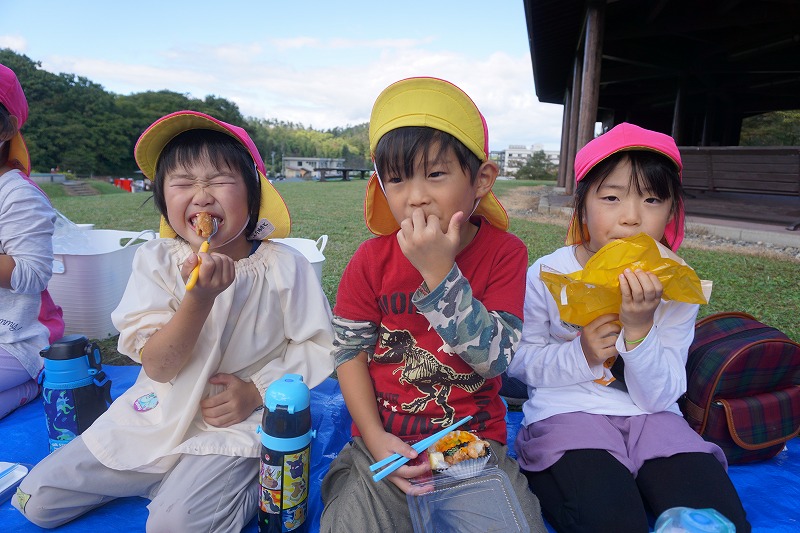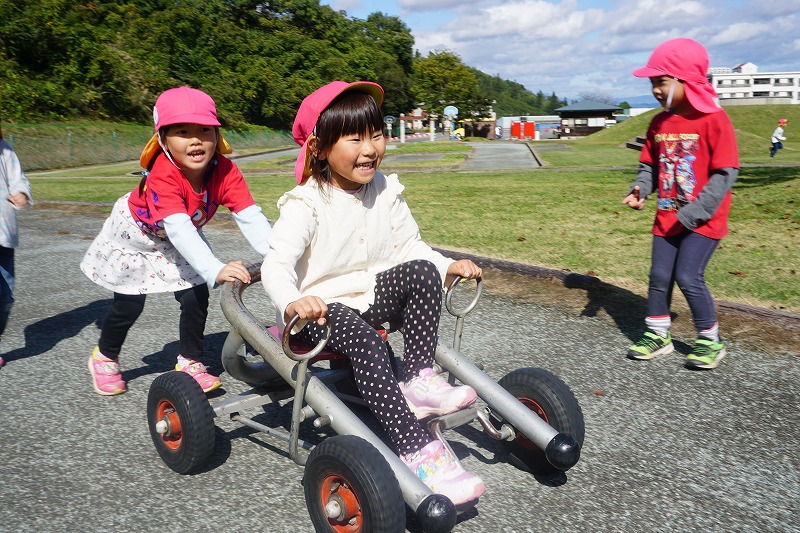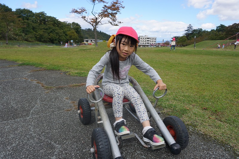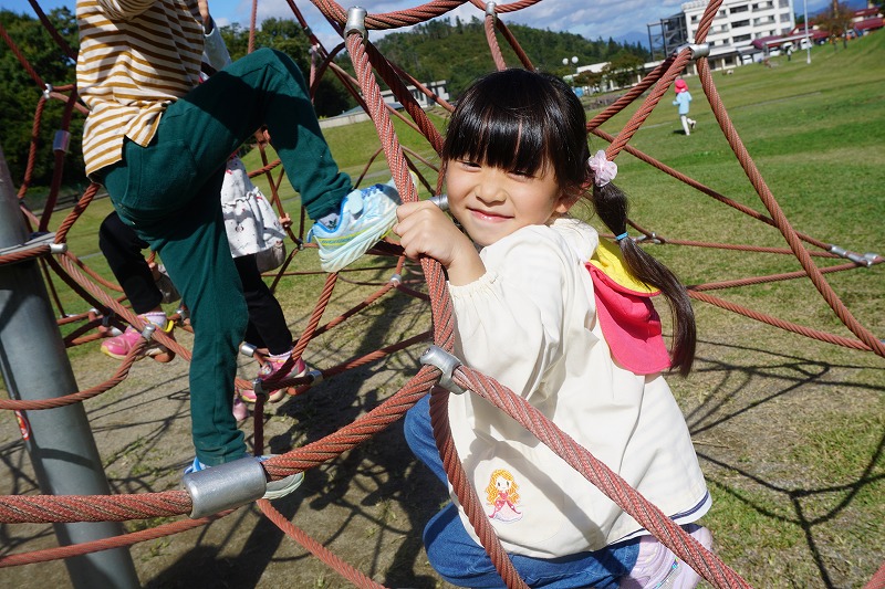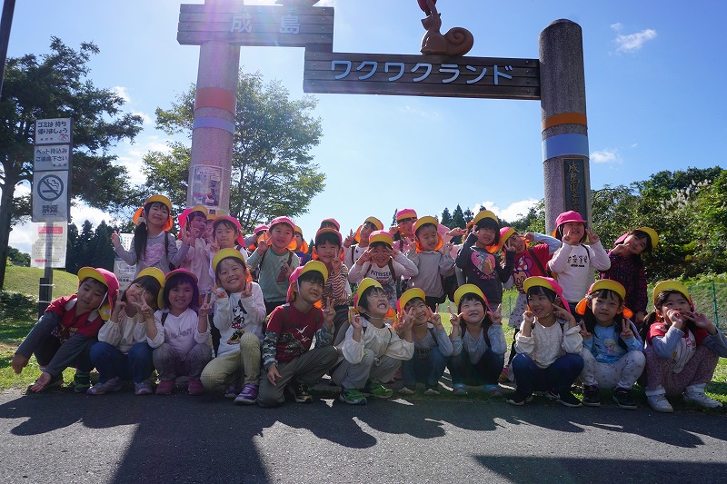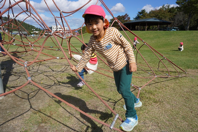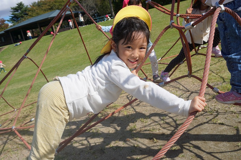 10月15日(金)米沢市の「わくわくランド」へ園外保育に行ってきました。大きなジャングルジムのてっぺんまで登ったり、ゴーカートに乗って友だちと競争したり、沢山体を動かして遊んできました。お腹もペコペコになり、昼食は給食の先生が作ってくれたお弁当を「おいしい~!」とあっという間にぺろりと完食しました!