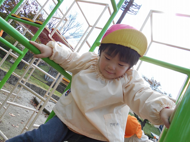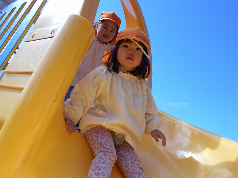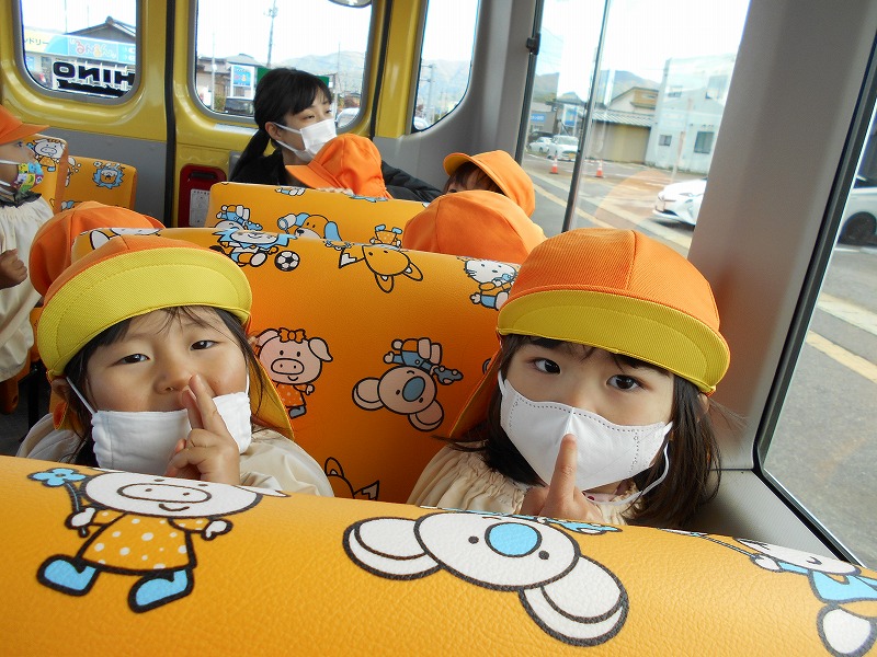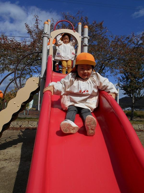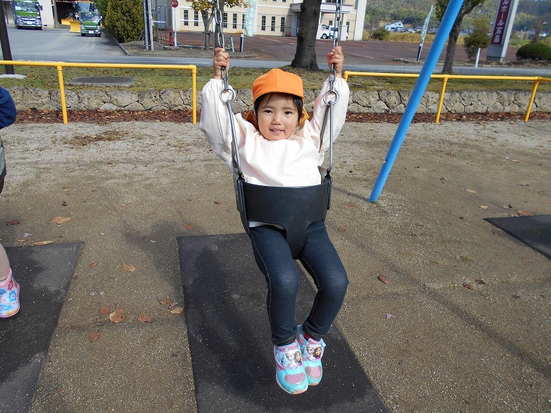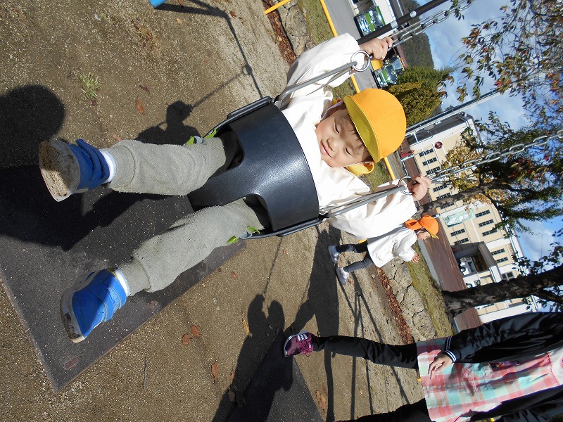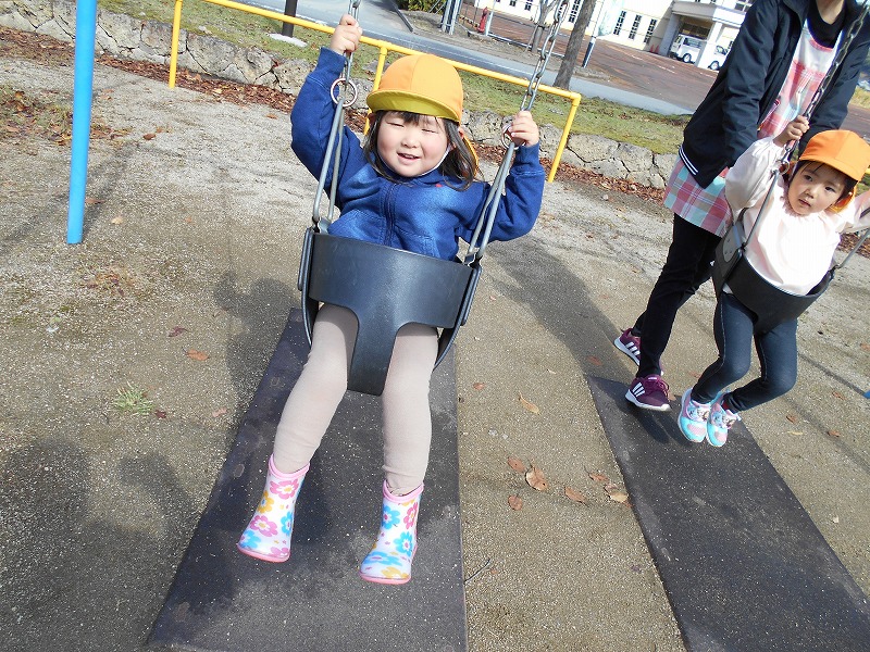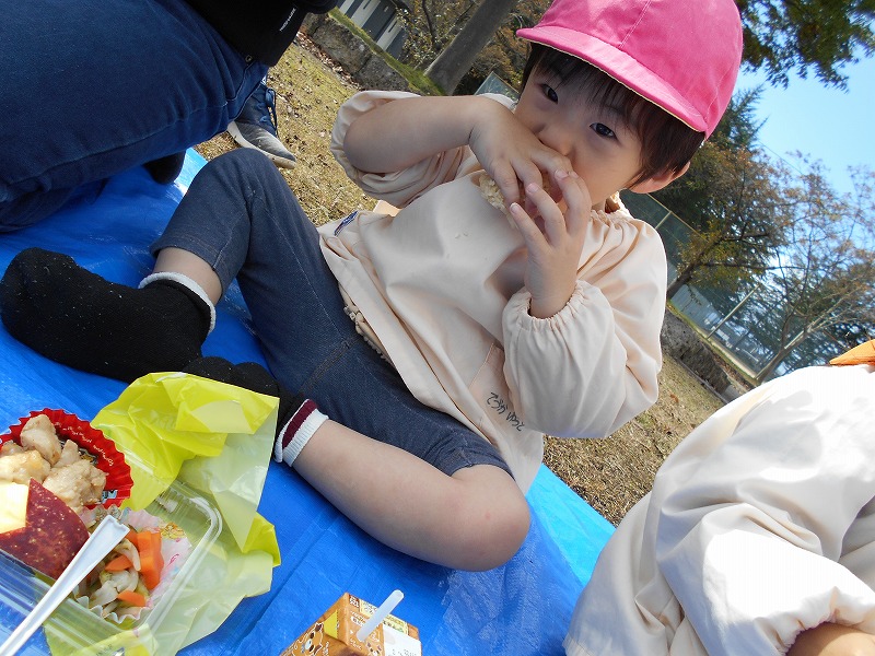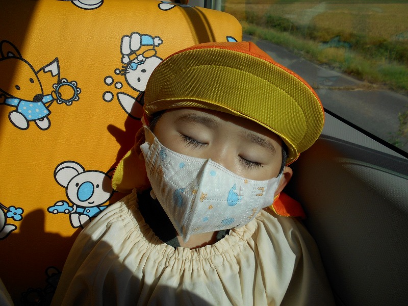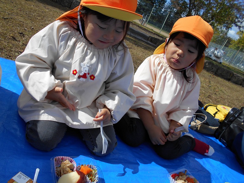 10月21日(木)高畠町の「高畠中央公園」へ園外保育に行ってきました。うさぎバスに乗るのはみんな初めて!「いってきまーす」と元気に出発しました。ブランコや滑り台などの遊具ででいっぱい遊び、昼食は給食の先生が作ってくれたお弁当。みんな「おいしい~」と喜んで食べました。