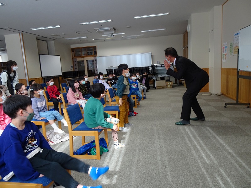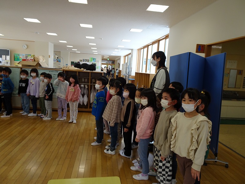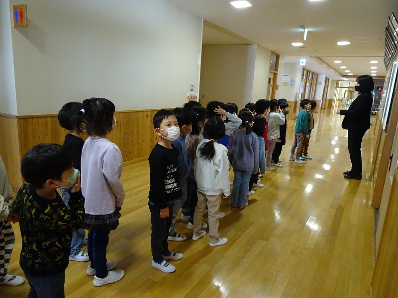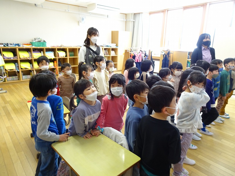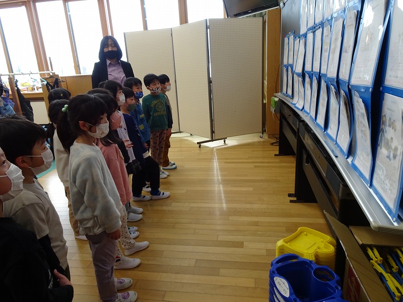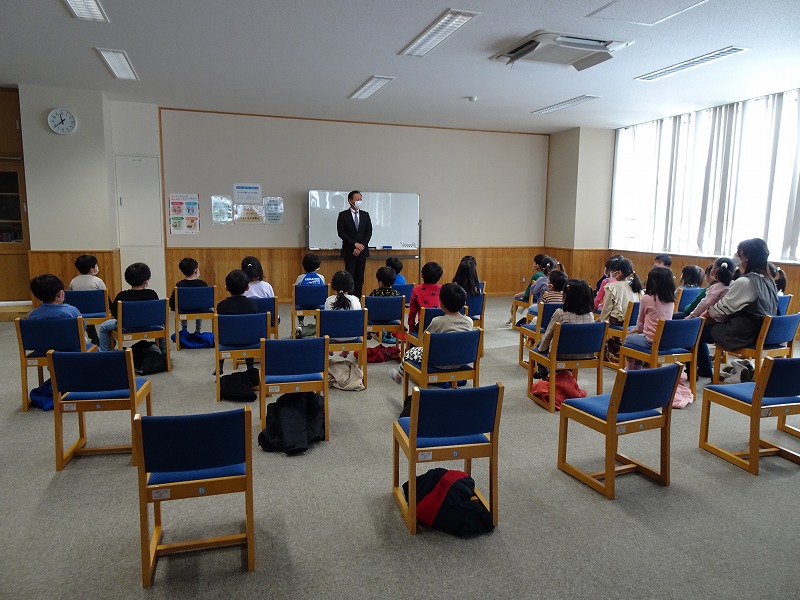 4月から小学校に入学するふじ組さんが、上郷小学校に学校訪問に行ってきました。小学校では授業の様子を見せて頂き、校長先生のお話を聞いた後は質問にも答えて頂きました。「小学校は何時に行くんですか?」「「ドッチボールはしますか?」「給食は何時に食べますか?」などたくさん質問をし、一つ一つ分かりやすく校長先生が教えてくれました。帰りのバスでは「楽しかった!」とお話も盛り上がり小学校入学への期待が増々膨らんだようでした!