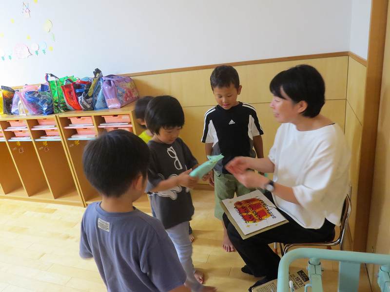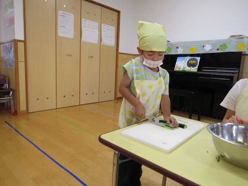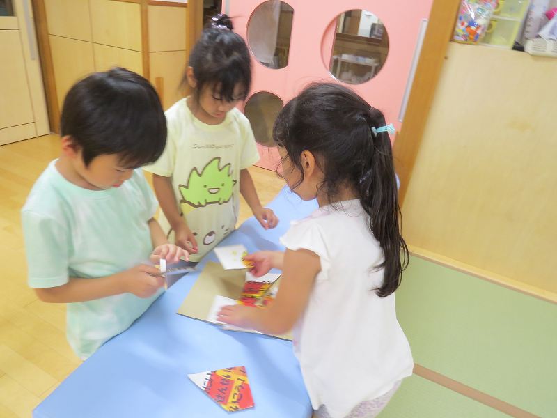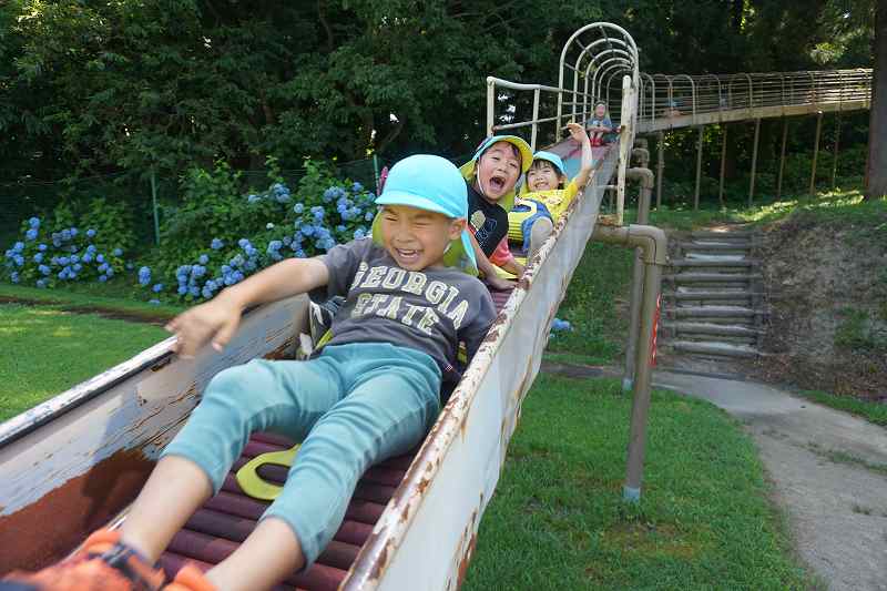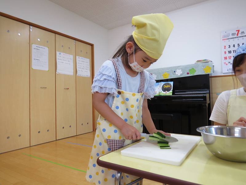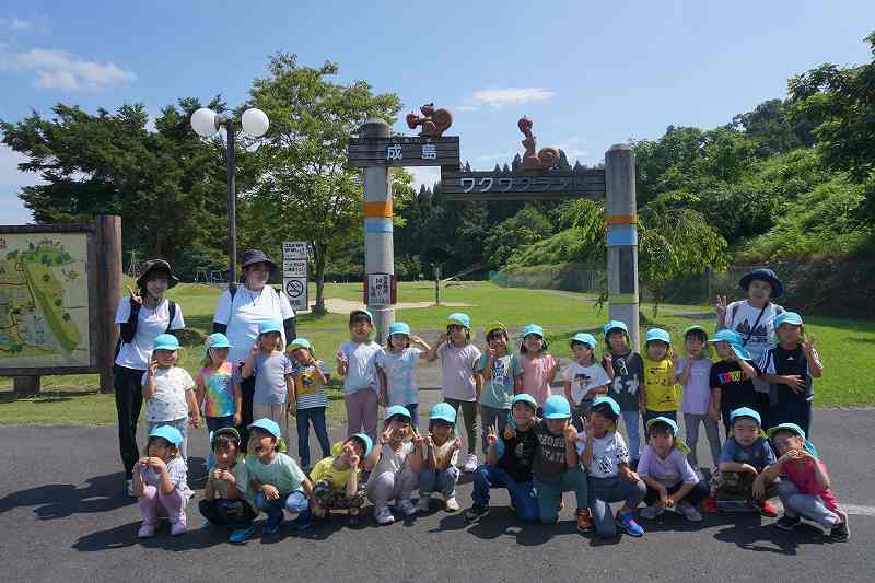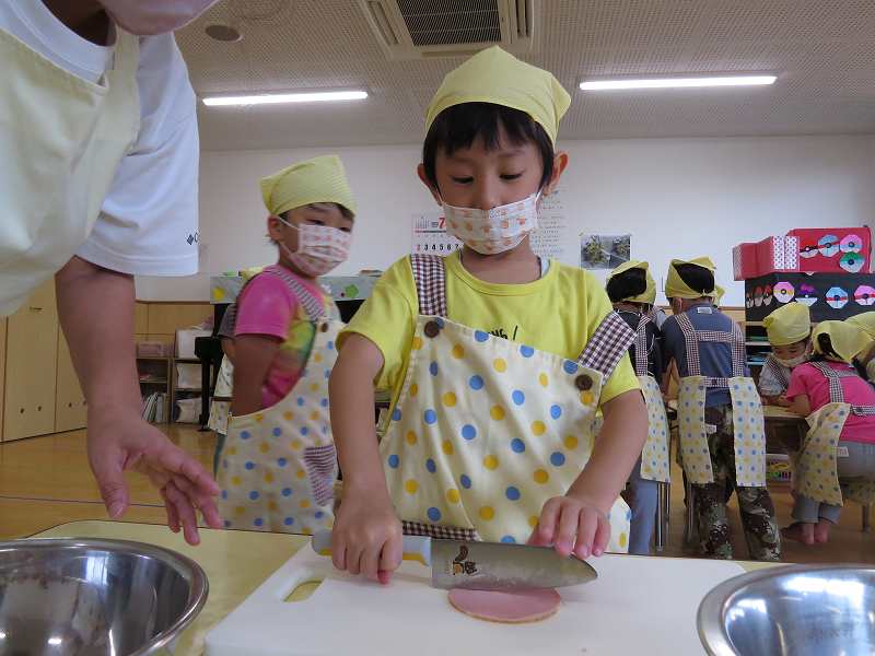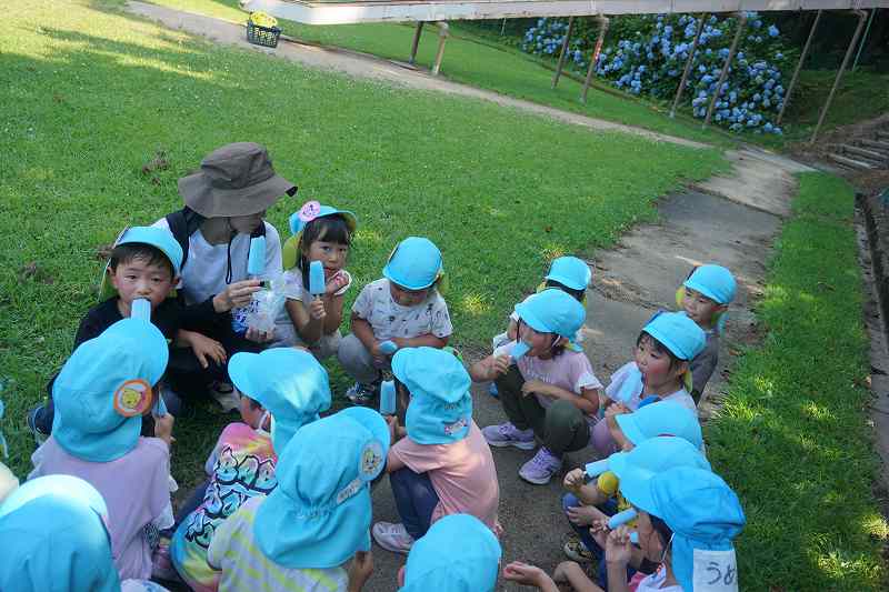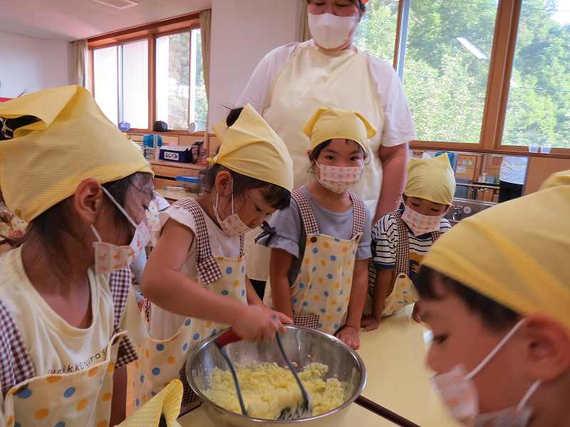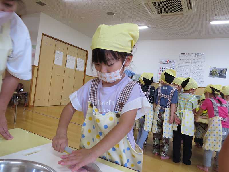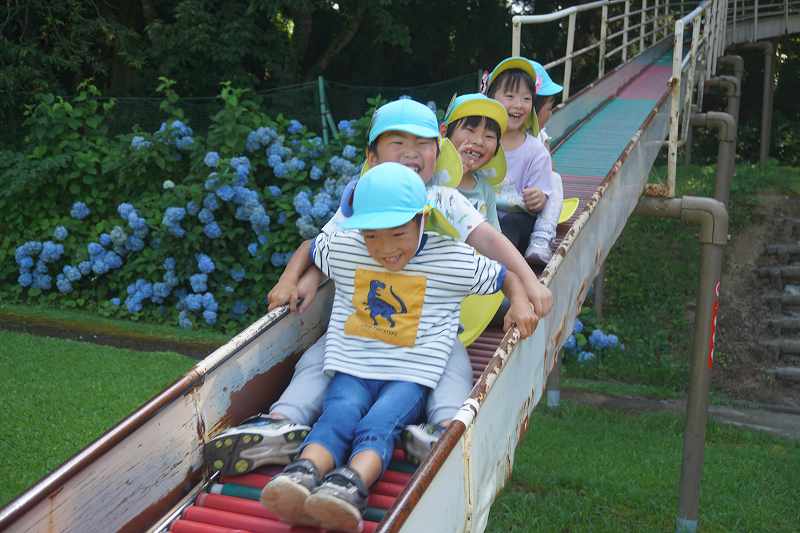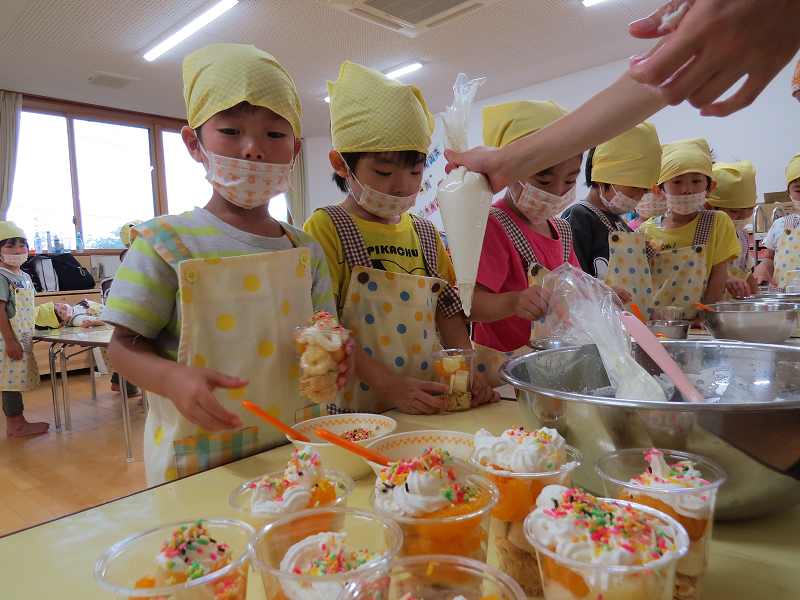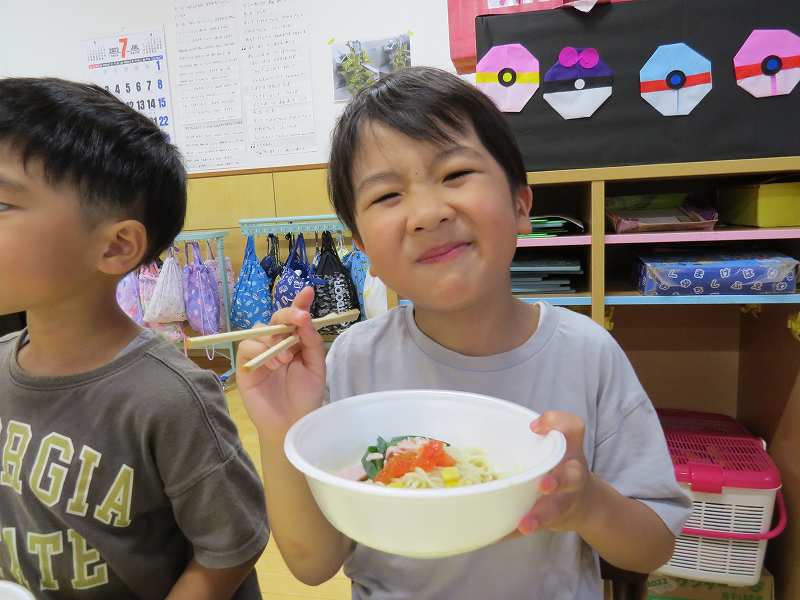 7月22日(土)~23日(日)ふじ組さんのお泊り保育がありました。お昼から集まり、始まりの会をしてお泊り保育がスタート!わくわくランドで遊び、小野川温泉でお風呂に入った後は田んぼアートがある展望台へ行きました。園に戻ると夕食作り。メニューは「冷やし中華・ポテトサラダ・フルーツパフェ」でした。野菜や果物を切り、ポテトサラダを作ったり、パフェを盛りつけたら美味しい夕食の完成。みんなで作った夕食は格別でした。夕食後は花火や夜の宝探しゲームを楽しみ1日目が終了。めいいっぱい遊んで、いっぱい食べて大満足のふじ組さん。おやすみなさいをすると、あっという間に夢の中でした。