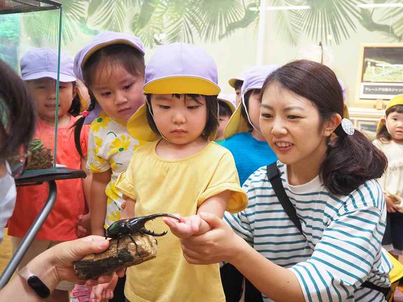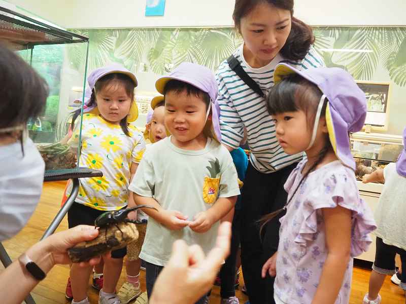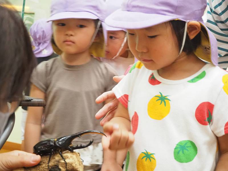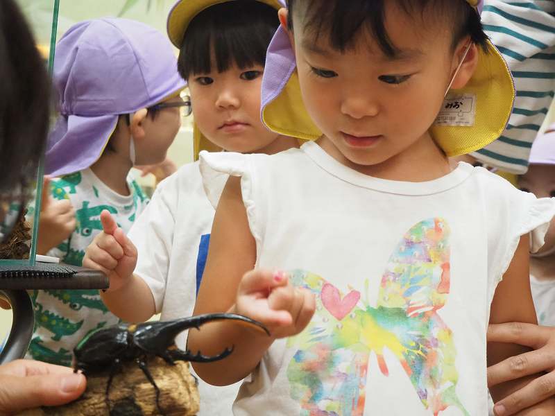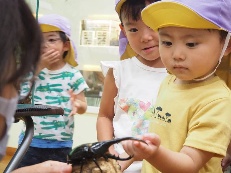 9月4日、さくら組さんが“よねざわ昆虫館”に行ってきました。館内を案内してもらいながら、いろんな虫のお話も聞かせて頂きました。特別に「ヘラクレスオオカブト」「オオルリアゲハ」触らせてもらい、貴重な体験もしてきました。