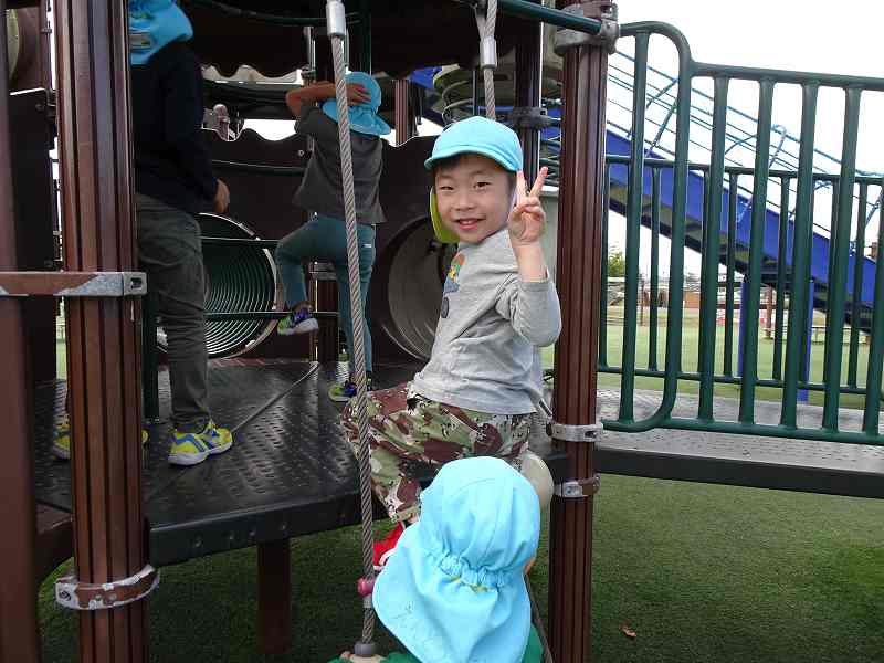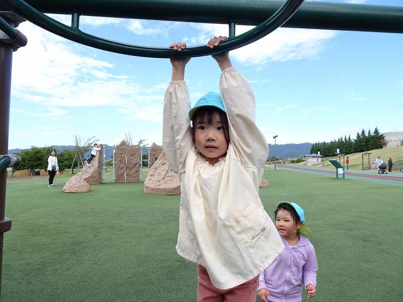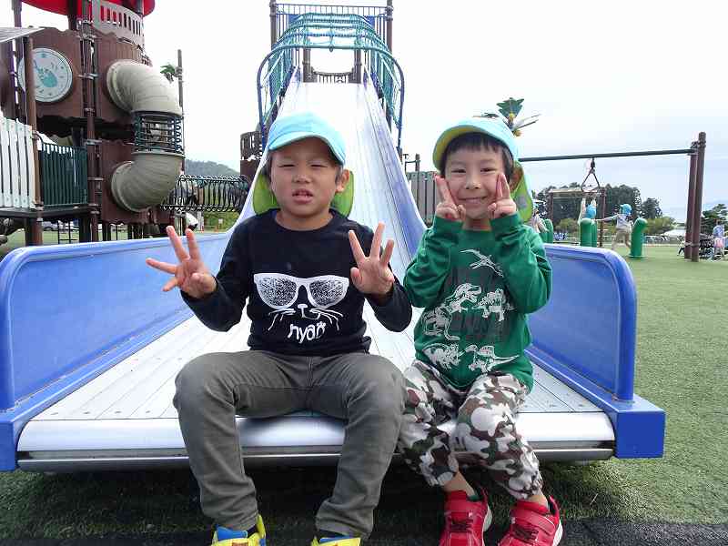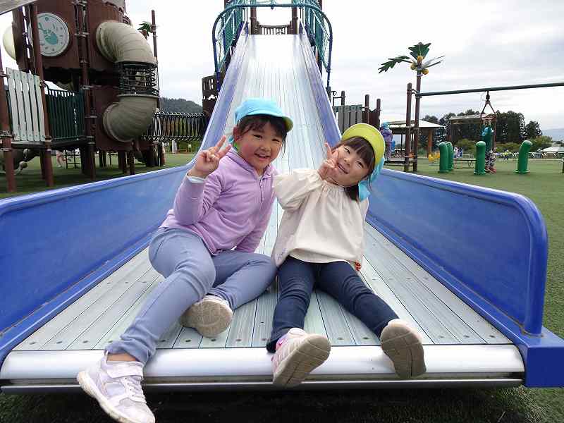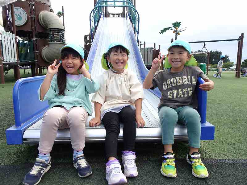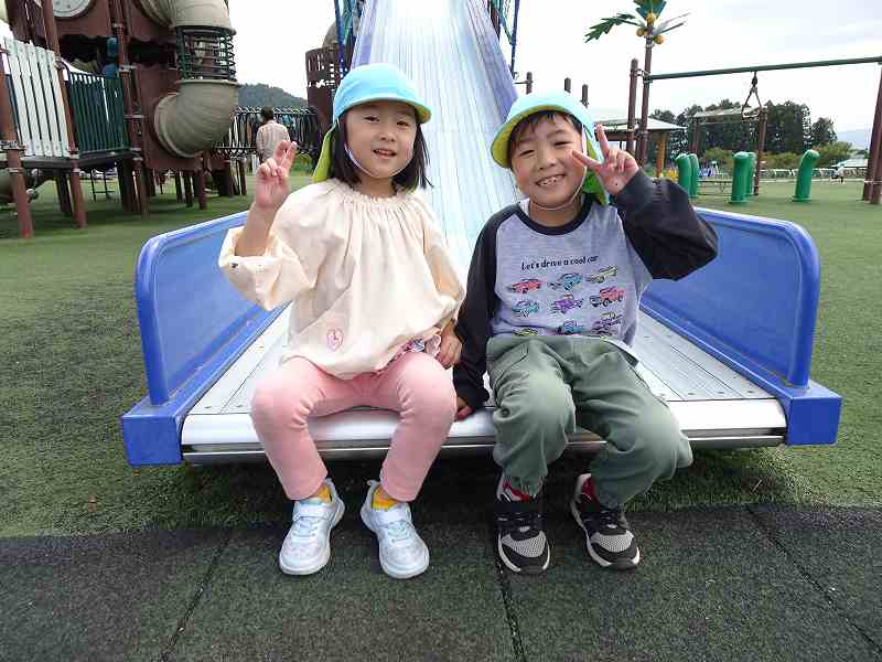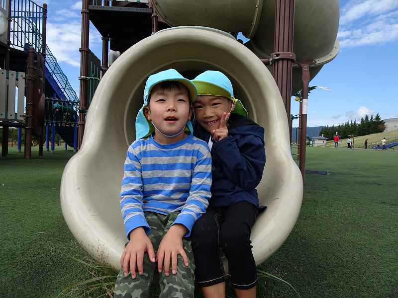10月4日、ふじ組さんが園外保育で南陽市の花公園に行ってきました。花公園に到着し集合写真を撮った後は、一目散にローラー滑り台や大型固定遊具へ走っていった子ども達!お天気も良くたっぷり遊ぶことができました。お昼はお家の方に作って頂いたお弁当を秋晴れの下おいしくいただきました。