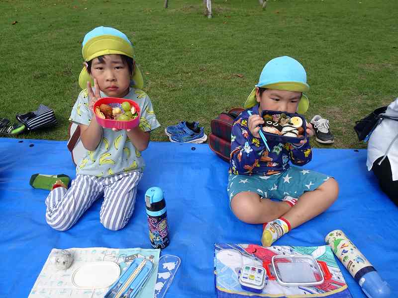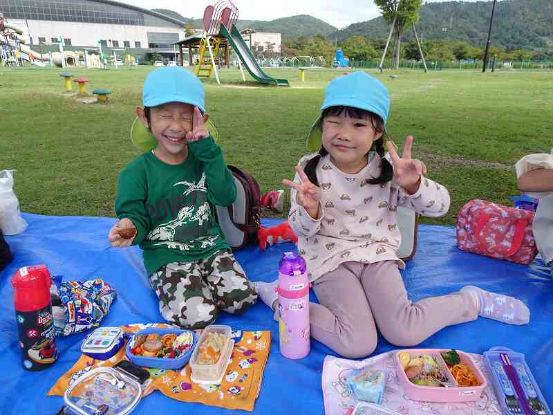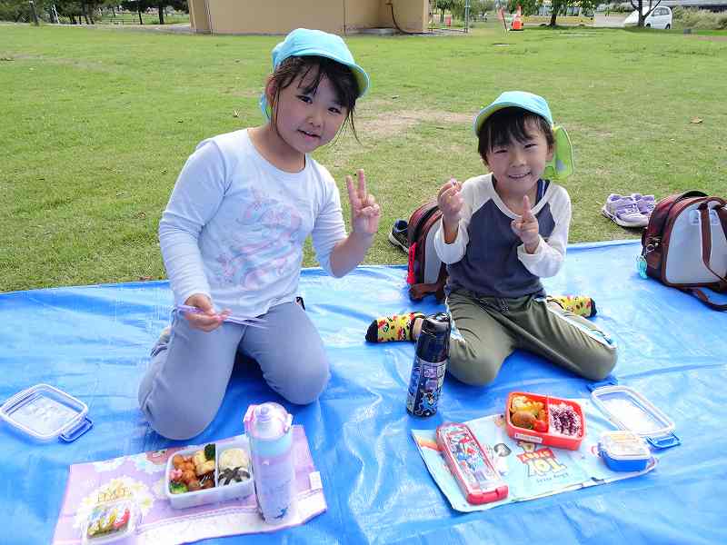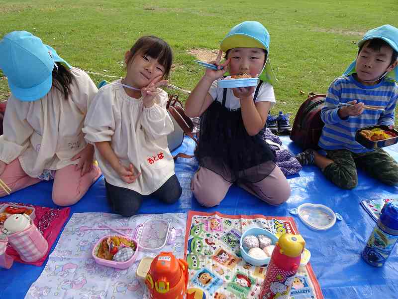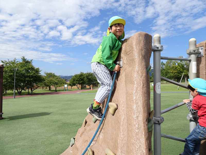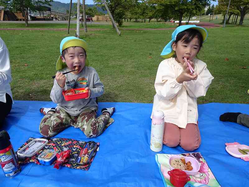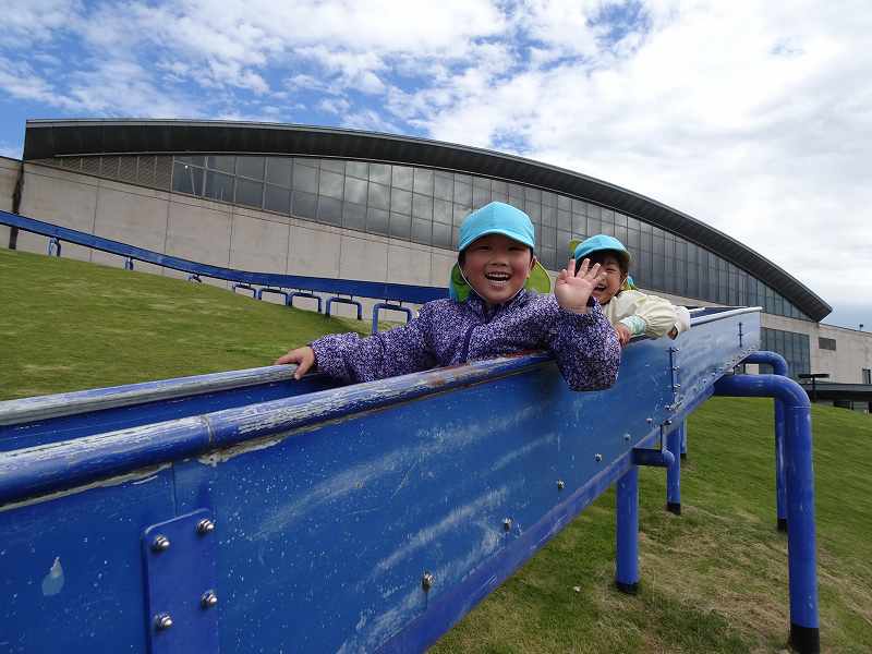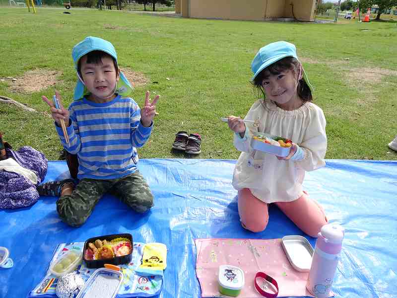 10月4日、ふじ組さんが園外保育で南陽市の花公園に行ってきました。花公園に到着し集合写真を撮った後は、一目散にローラー滑り台や大型固定遊具へ走っていった子ども達!お天気も良くたっぷり遊ぶことができました。お昼はお家の方に作って頂いたお弁当を秋晴れの下おいしくいただきました。