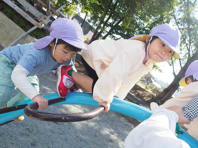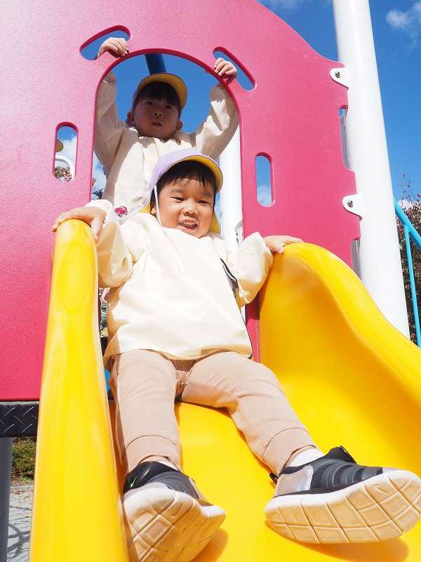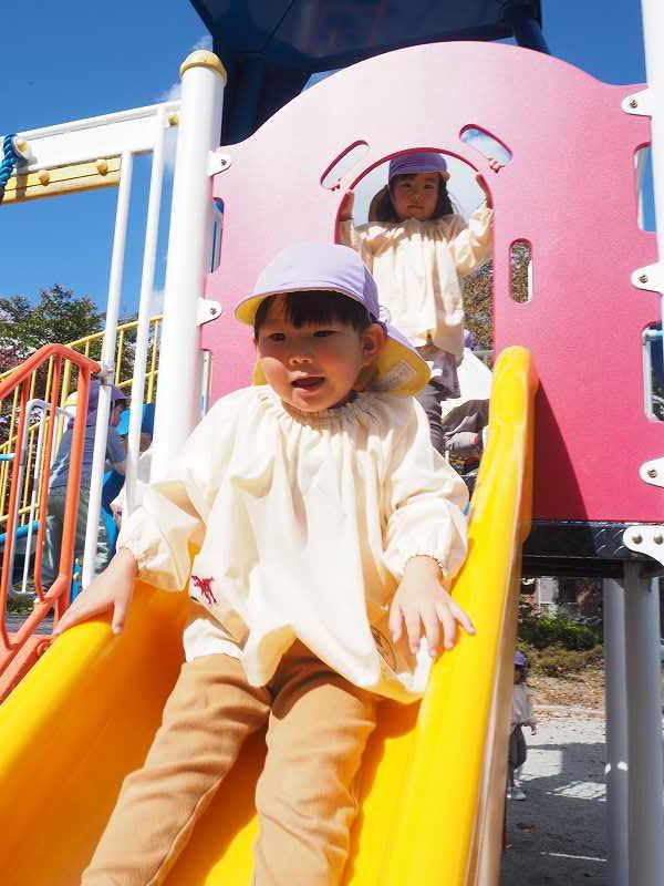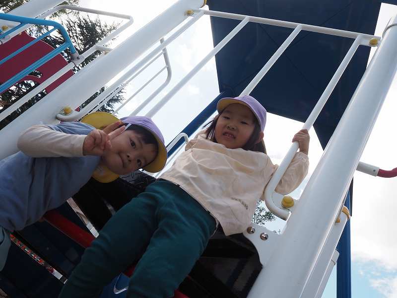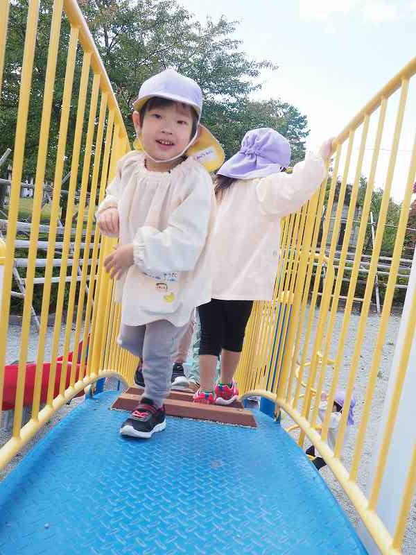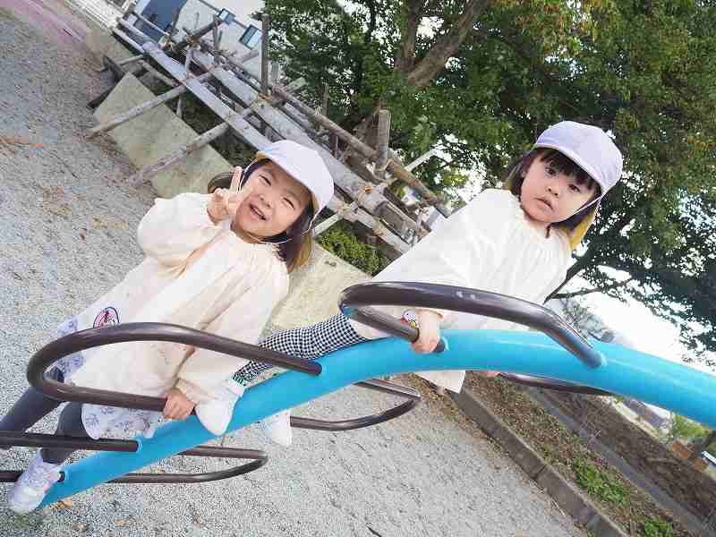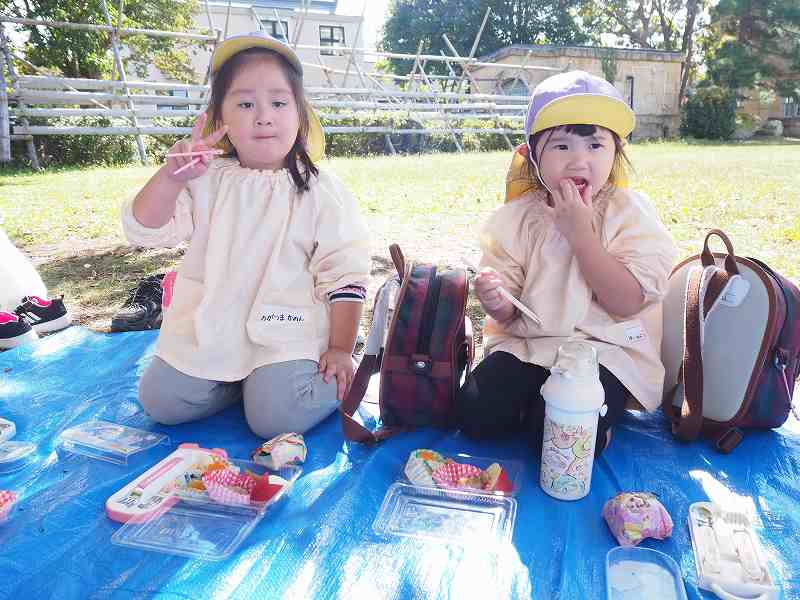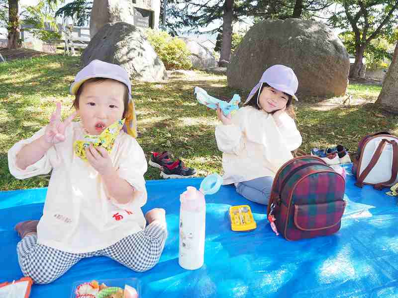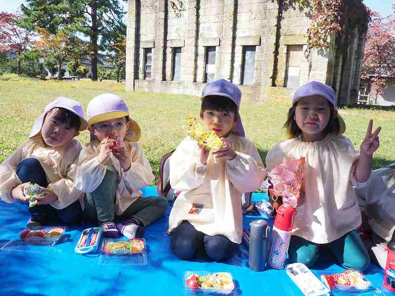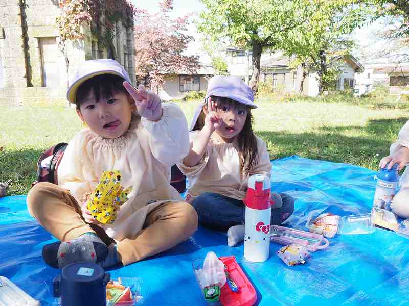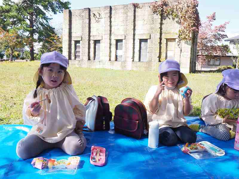 10月18日(水)さくら組さんが旧高畠駅へ園外保育に行ってきました。お天気も良く、普段とは違う固定遊具で思いっきり遊んできました。お昼は給食の先生が作ってくれたお弁当!たくさん遊んだ後のみんなと一緒にお外で食べるお弁当は格別だったようで、「おいしいね!」笑顔いっぱいの子ども達でした!