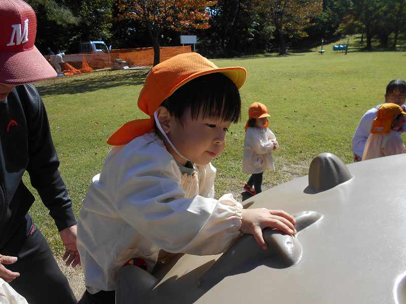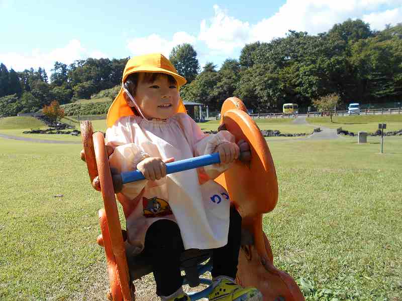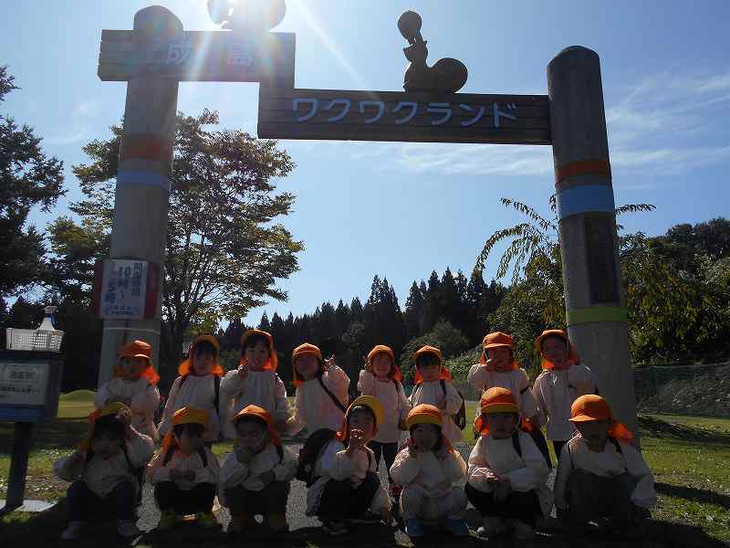 10月12日にぱんだ組さんが初めての園外保育で「わくわくランド」に行ってきました。みんなでバスに乗ってのお出かけもとっても楽しみしていたぱんだ組さん。「いってまーす!」元気に出発しました。わくわくランドでは、滑り台やブランコなど無我夢中になって遊び、お腹もぺこぺこになったところに給食の先生が作ってくれたお弁当が到着。大喜びでもりもりお弁当を頬張っていたぱんだ組さんでした!