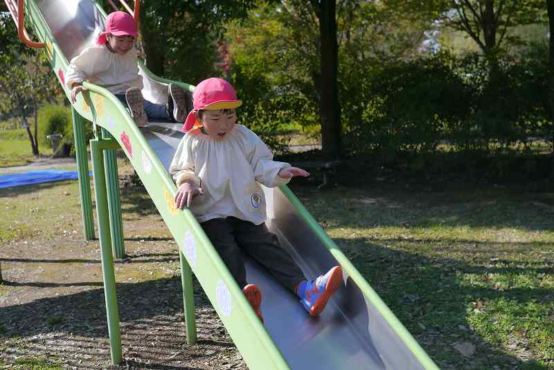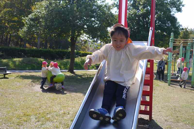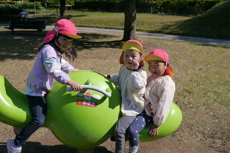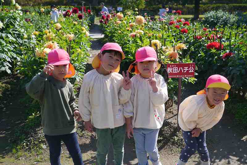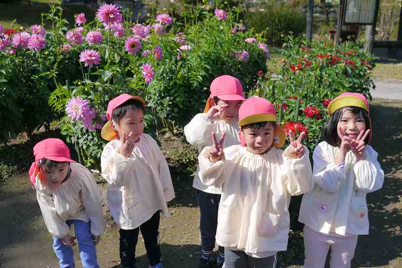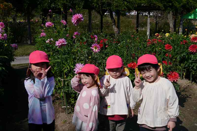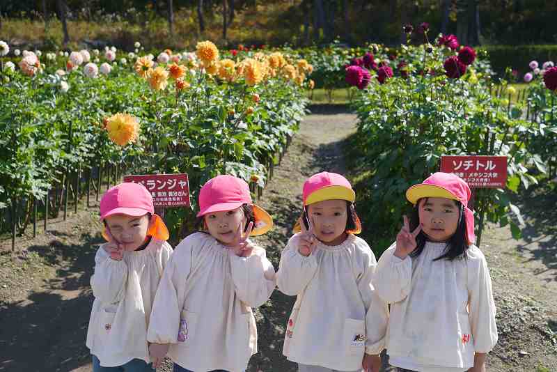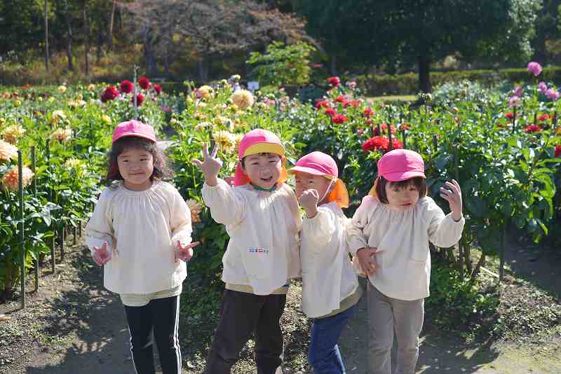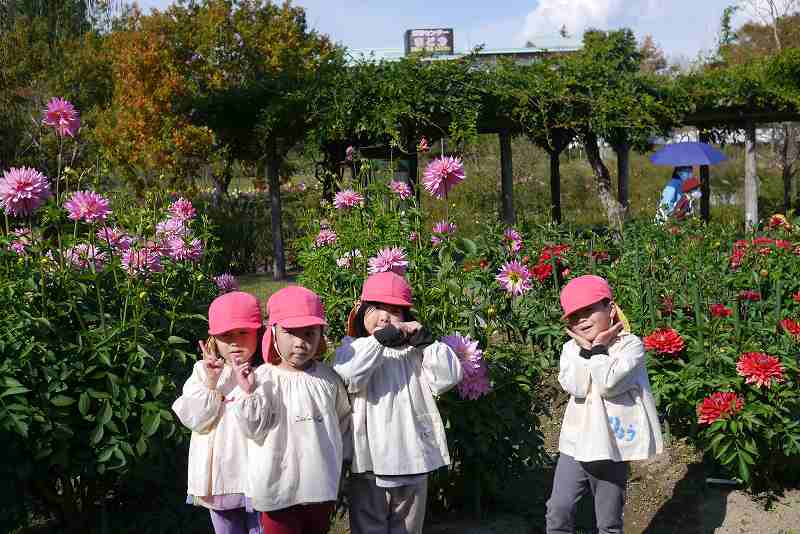 10月25日、すみれ組さんが園外保育で「川西ダリア園」に行ってきました。園外保育をとっても心待ちにしていたすみれ組さん。バスに乗りワクワクしながら出発しました。ダリア園に到着し、色とりどりのきれいなダリアを鑑賞しながらお散歩のあとは、公園のうんていや滑り台やなどの遊具でたくさん体を動かして遊びました。たっぷり遊び、お昼は給食の先生が作ってくれたおいしいお弁当を食べて園に帰ってきました!