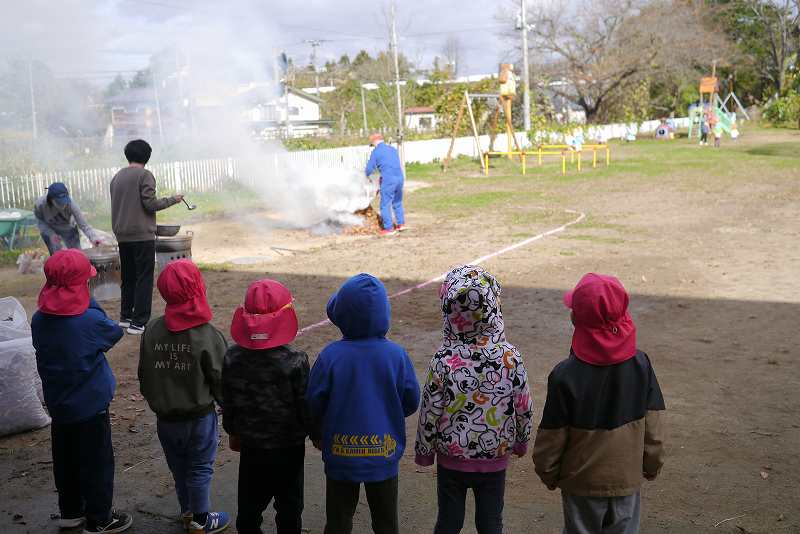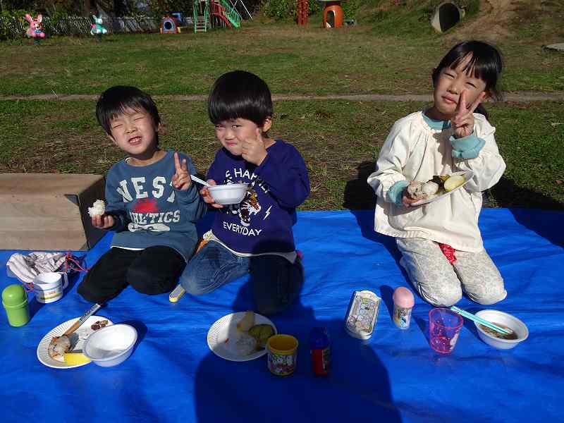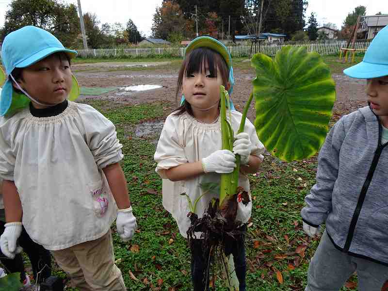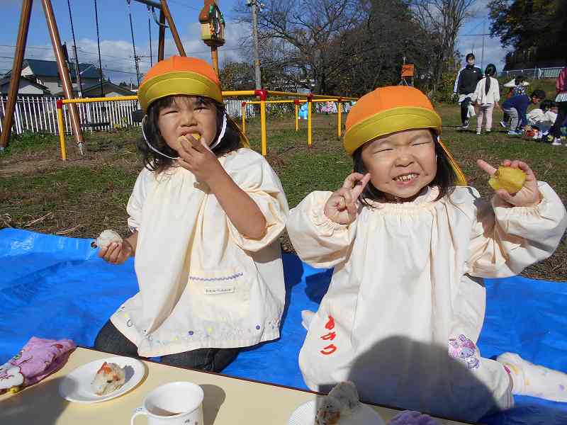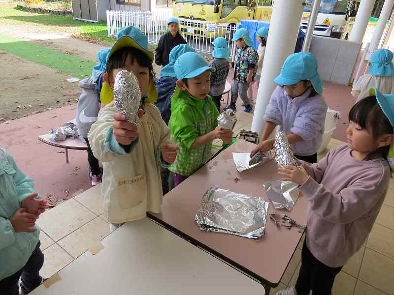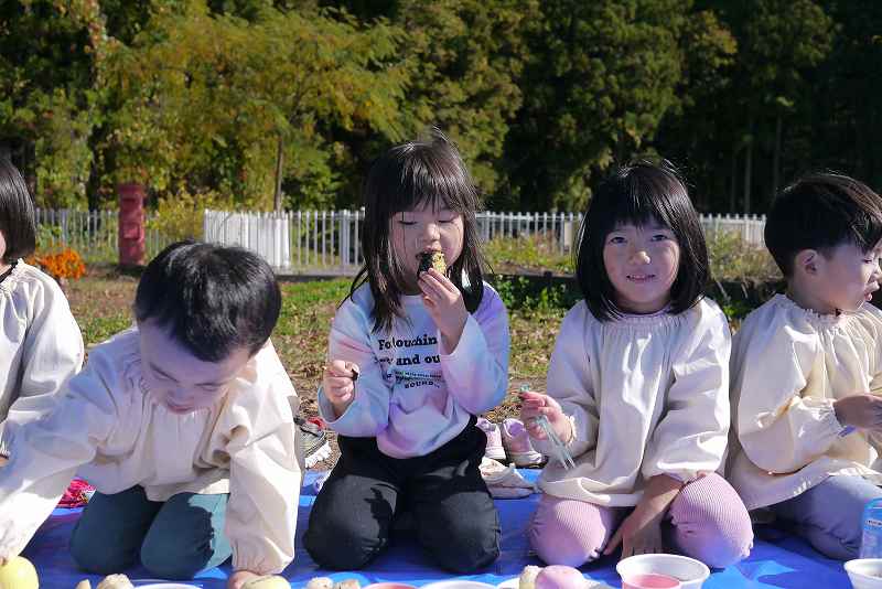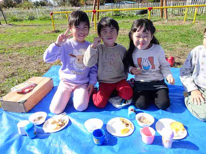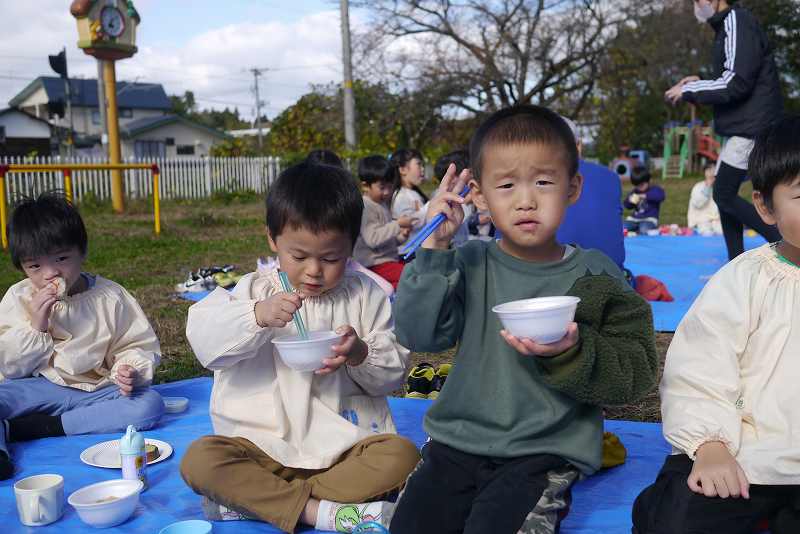 8日(水)ふじ組さんが育てたサツマイモと里芋をを使って、焼いも&芋煮パーティーをしました。おいしい焼いもが出来るようにと、数日前から落ち葉をたくさん集めてくれた子ども達のおかげで、ホクホクであま~い焼いもが出来ました!大きなお鍋二つで作った芋煮もとっても美味しくて、きれいに完食でした!
