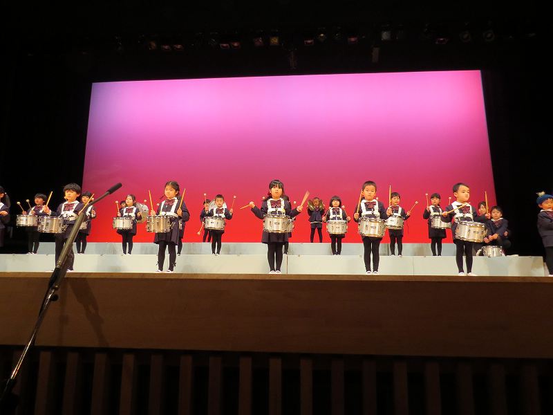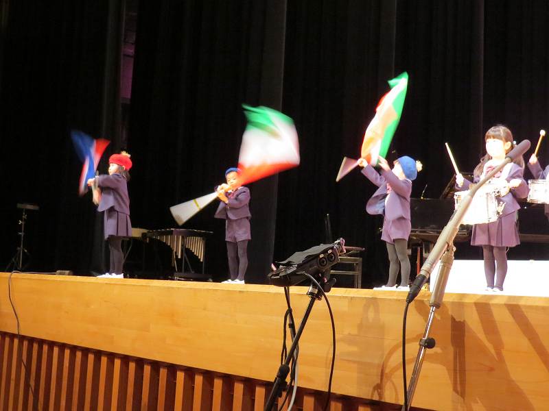 憧れだった鼓隊演奏「パプリカ」を最後まで堂々と演奏したすみれ組さん。オペレッタ「てぶくろ」もみんなと楽しそうに歌ったり踊ったり、セリフも上手でした。