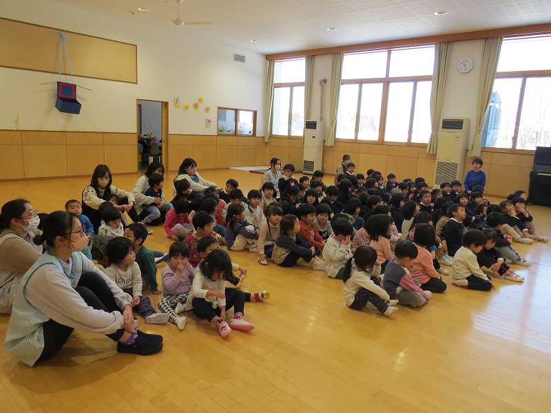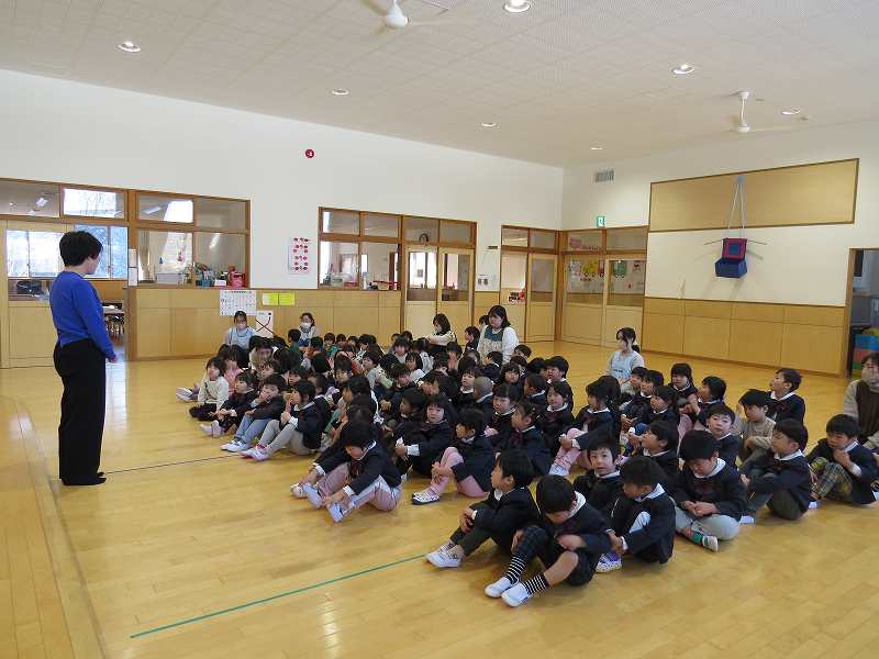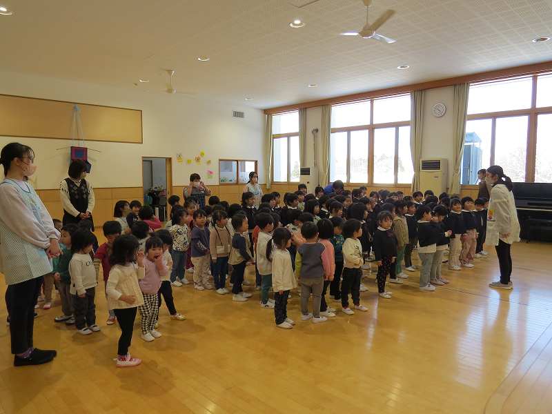 明けましておめでとうございます。今年も宜しくお願い致します。2024年1月9日(火)新たな年の始まりと共に新学期がスタートしました。始業式はぱんだ組・さくら組・すみれ組・ふじ組のお友だちがお遊戯室に集まり、みんなで元気に「あけましておめでとうございます」の挨拶をしました。3学期もお友だちと一緒に元気いっぱい過ごしましょうね。