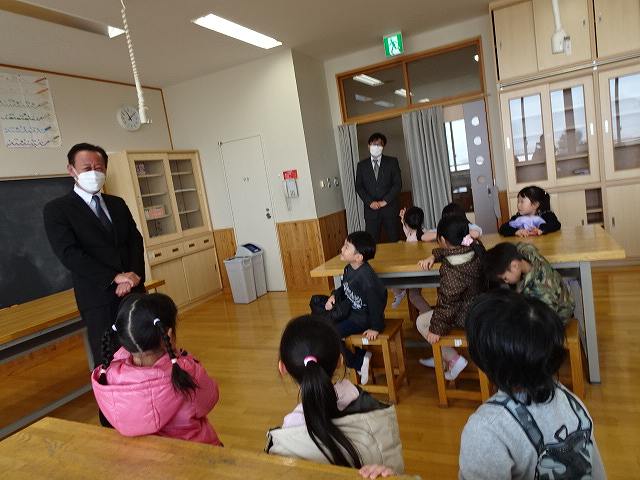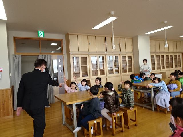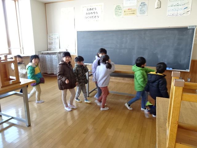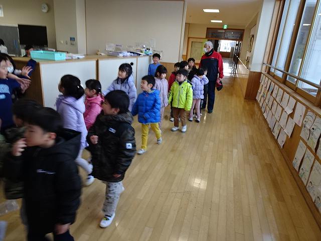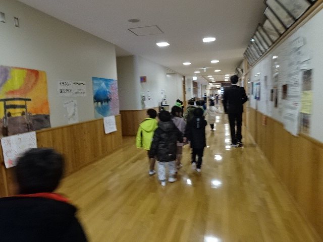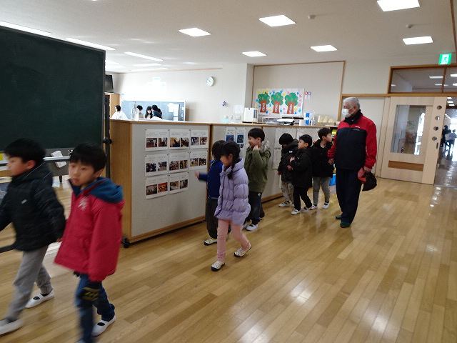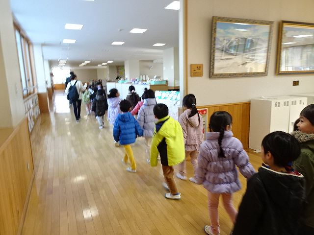 ふじ組さんが上郷小学校に学校訪問に行ってきました。大きな校舎の長い廊下を歩いたり、階段を上ったり下りたりしながら様々な教室を見せて頂きました。校長先生にもたくさん質問をして、小学校に行くのがますます楽しみになったようです。