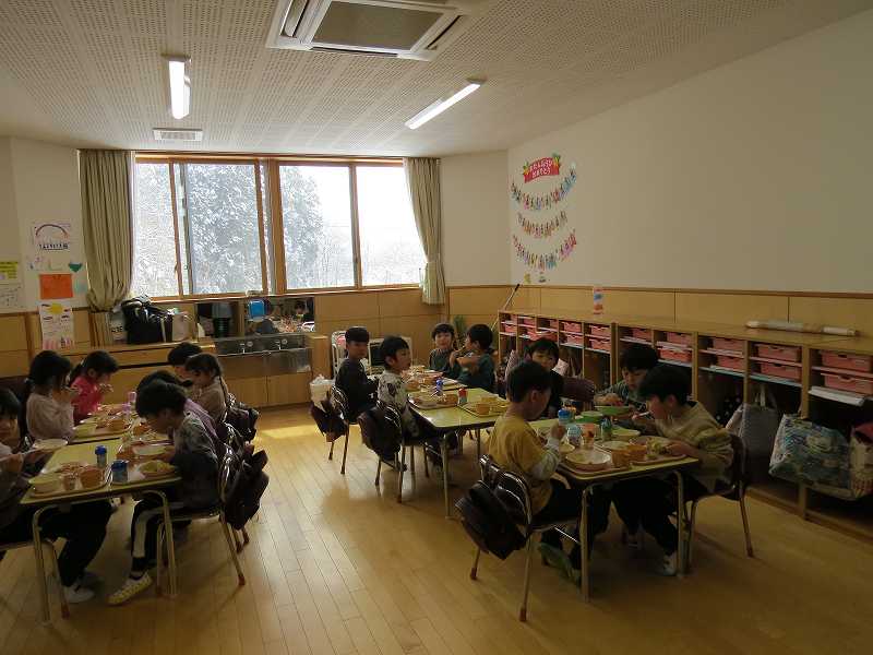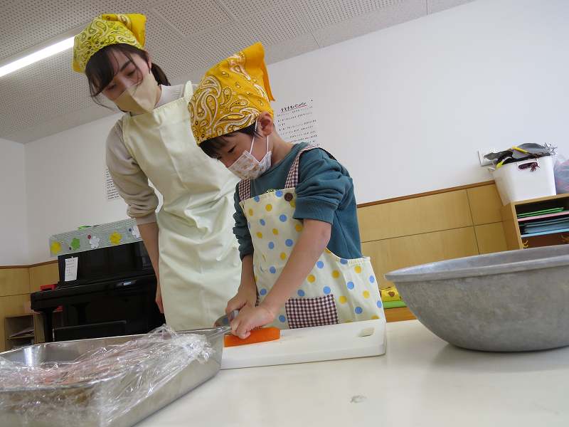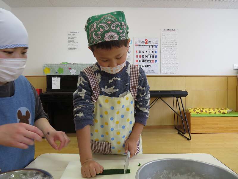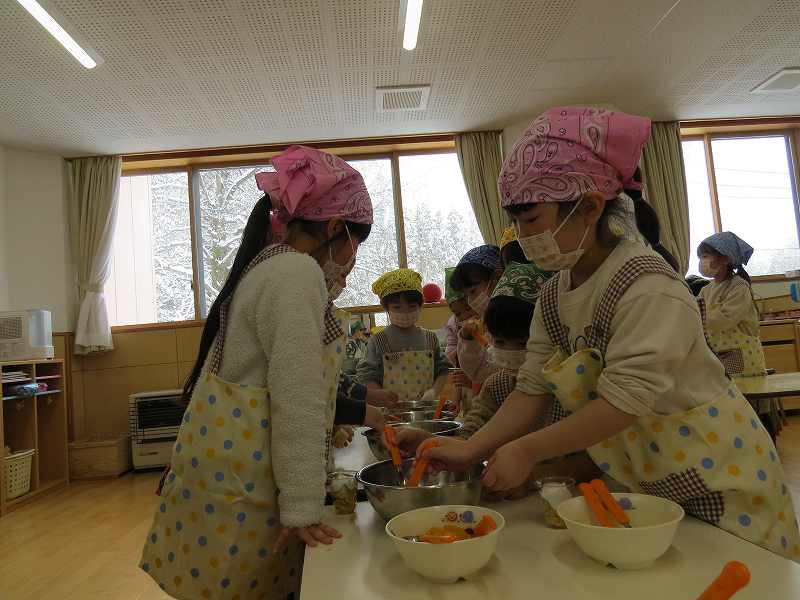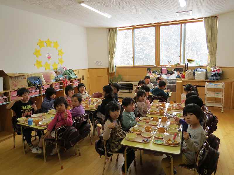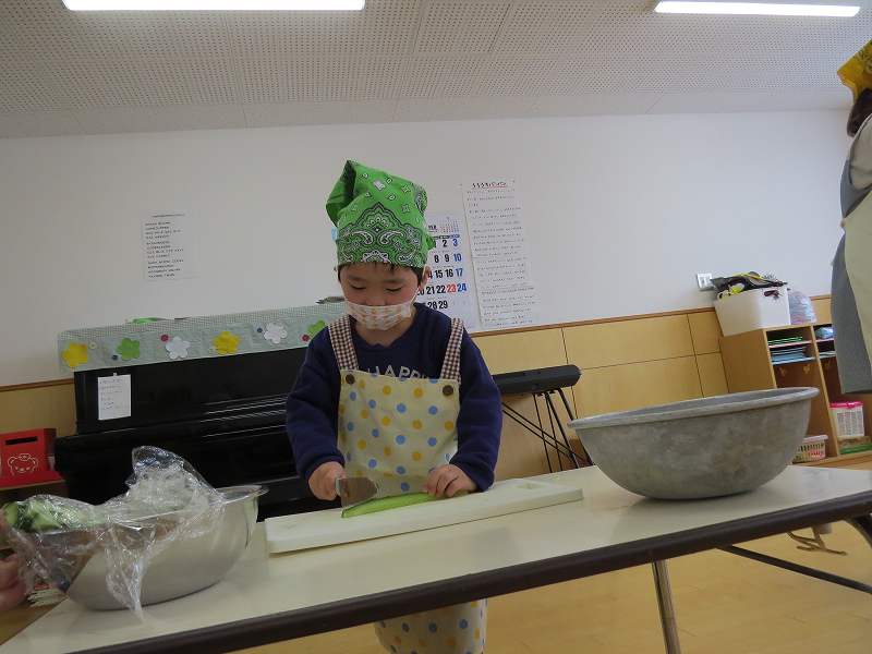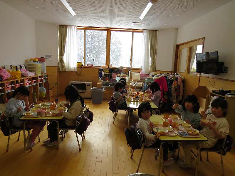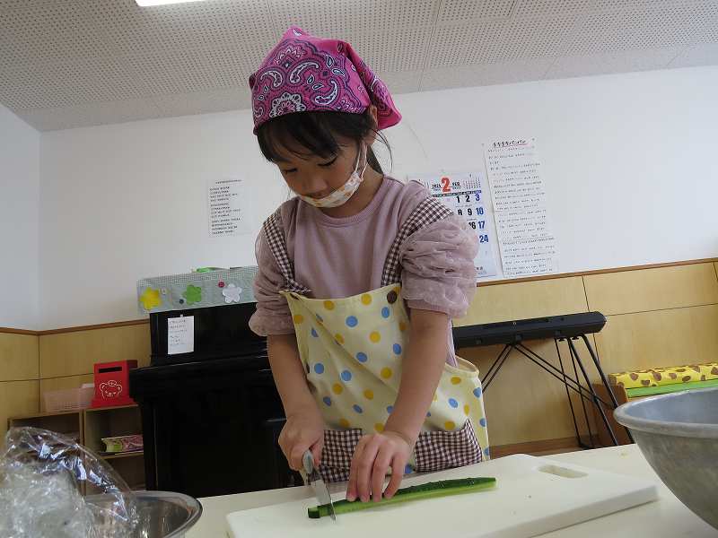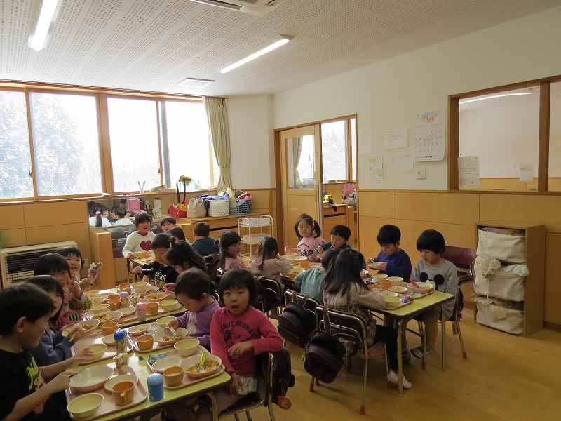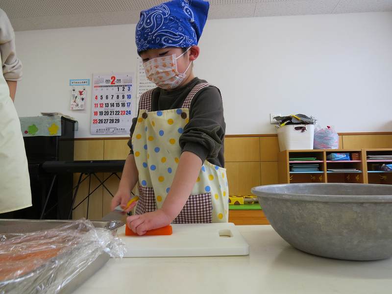 2月22日(木)ランチパーティがありました。ふじ組さんはサラダやカレーの野菜を包丁で切り、すみれ組さんはパフェのバナナをステーキナイフで切り、さくら組さんはポテトサラダのジャガイモをマッシャーで潰しました。フルーツパフェは、ぱんだ組さん~ふじ組さんが自分で盛り付けをして、オリジナルのスペシャルパフェを作りました!さくら組さん~ふじ組さんは好きなクラスを選び、異年齢で会話も弾みながらの楽しい食事になりました。