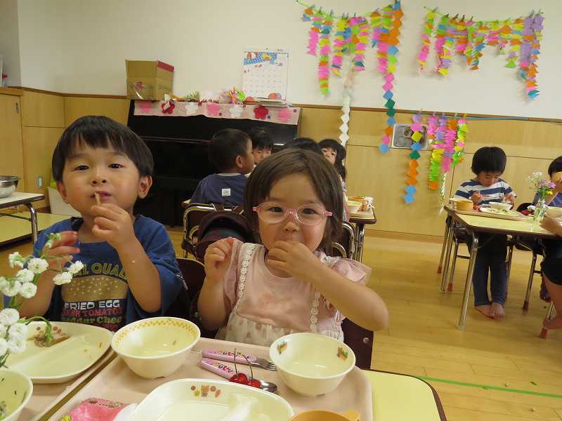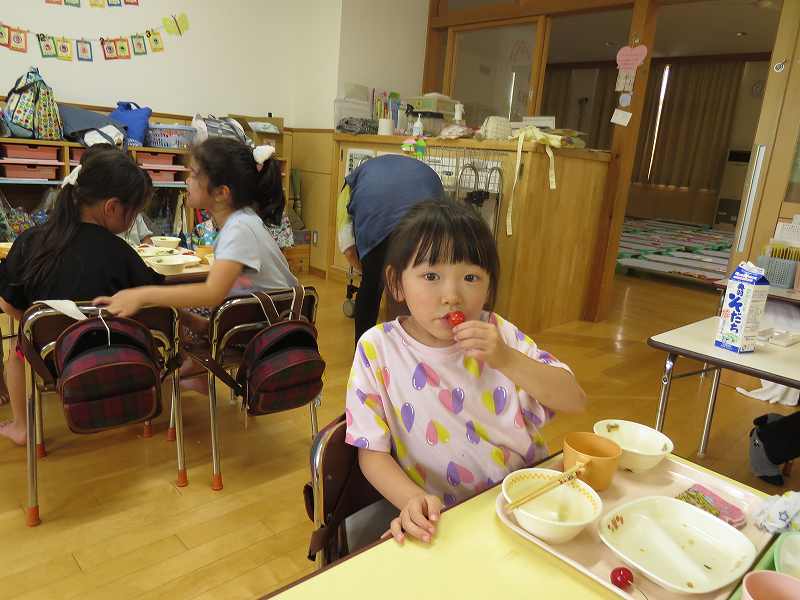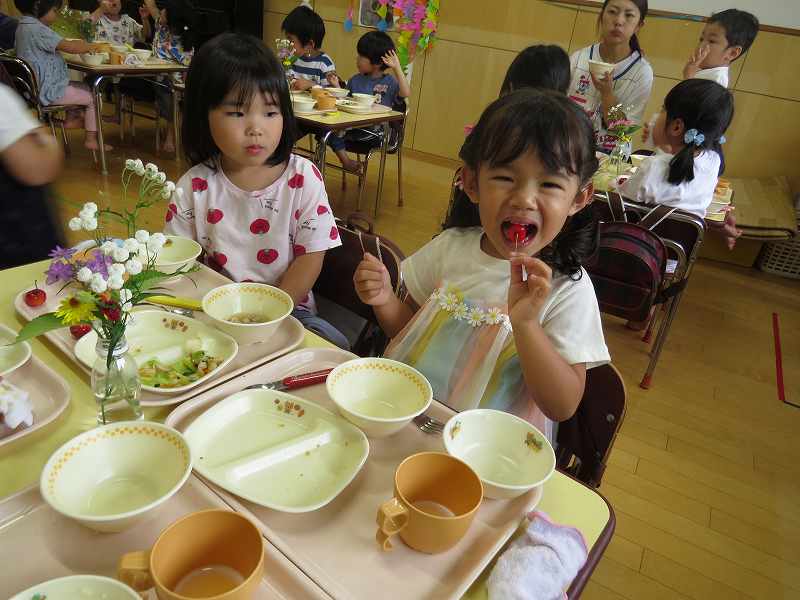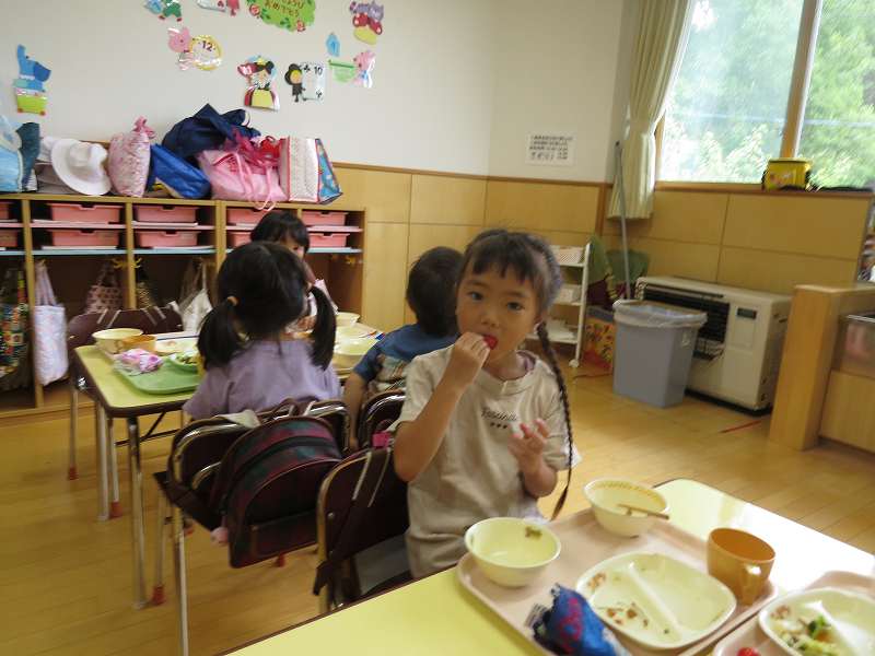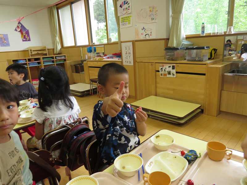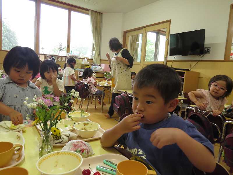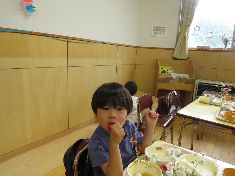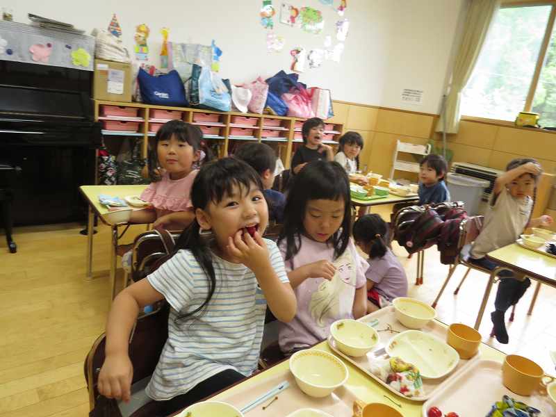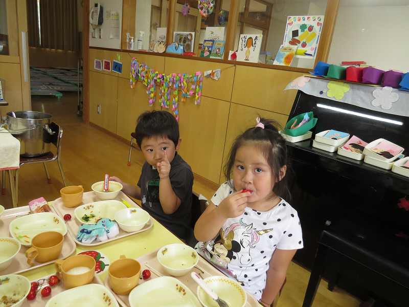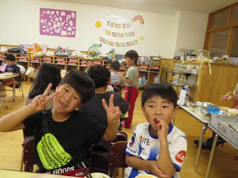 6月28日(金)の給食のデザートは、山形を代表する果物「サクランボ(紅秀峰)」でした。「今日はサクランボだね!」と給食の時間を楽しみにしていた子ども達。サクランボのようなつやつや赤いほっぺで初夏の味覚を美味しそうに笑顔で頬張ってました!