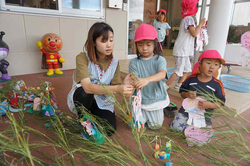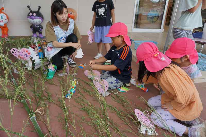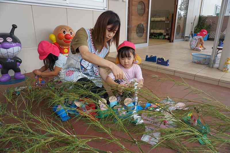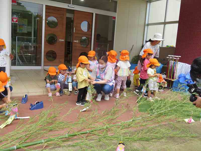 7月7日の七夕に向けて、各クラスで短冊や七夕飾りを作り玄関の笹に飾りつけをしました。短冊や七夕飾りの制作風景や笹に飾っている様子などはNCVさんに撮影していただきました。後日放送されますのでお楽しみに!