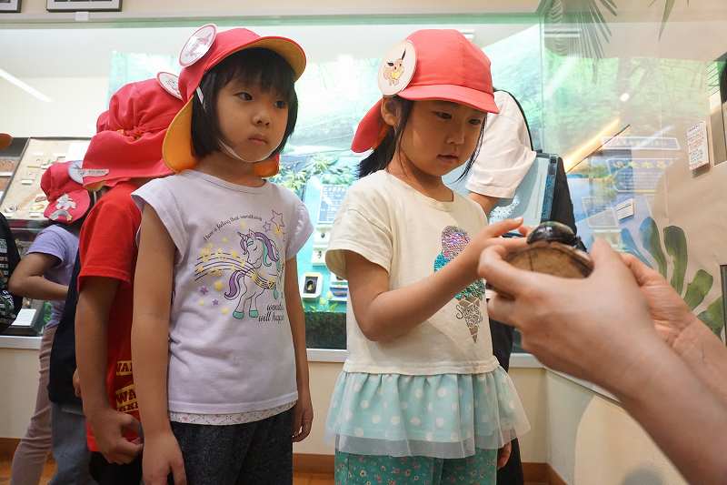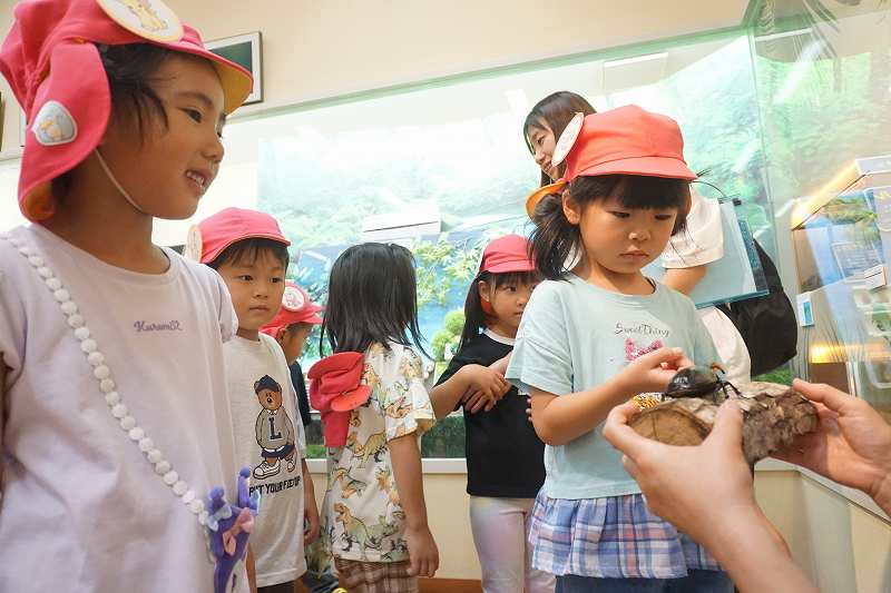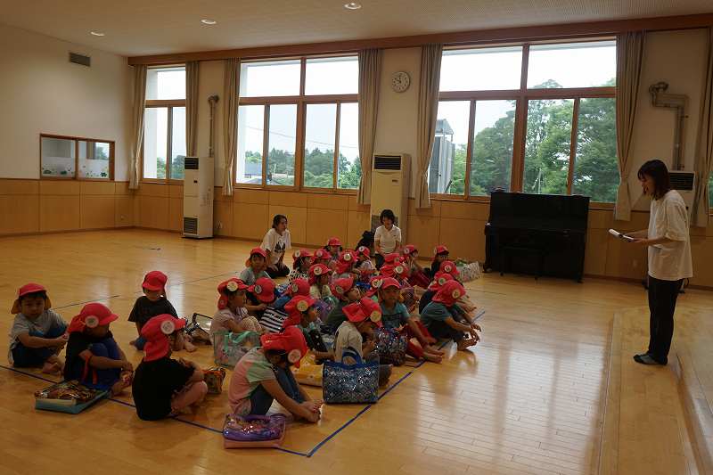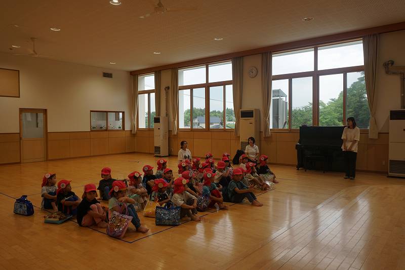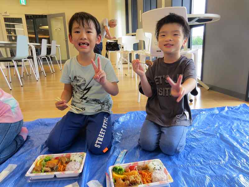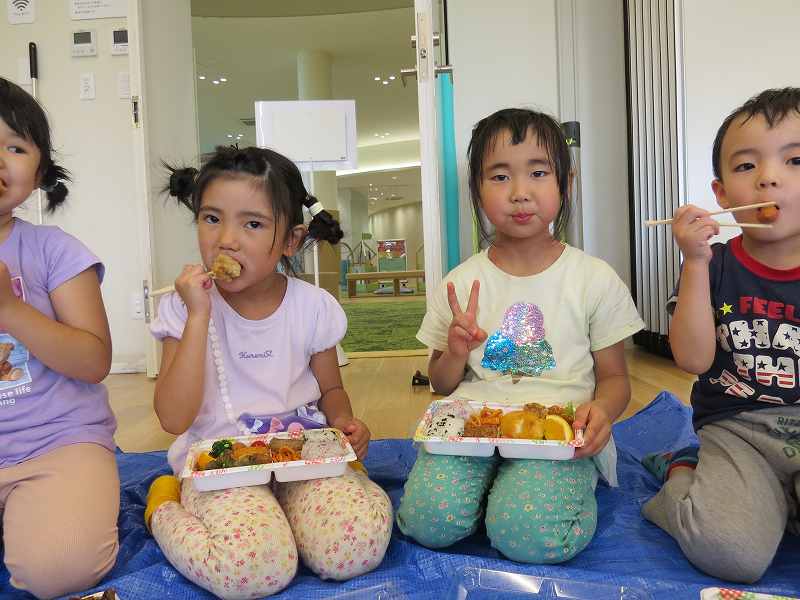 7月19日(土)~20日(金)ふじ組さんのお泊り保育がありました。お泊り保育に向けて、どんなことをしたいか話し合いをしたり、朝食や夕食の材料のお買い物に行ったりとお泊り保育をとても楽しみにしていた子ども達。当日の朝も「おはようございます!」と元気に登園し、園外保育に出掛けました。“長井市のくるんと”で体を動かし存分に遊び、お弁当を食べた後は昆虫館へ。虫の観察して“ヘラクレスオオカブト”も触らせてもらいました。その後は小野川の「やまぼうし」へ移動し温泉にも入ってきました。