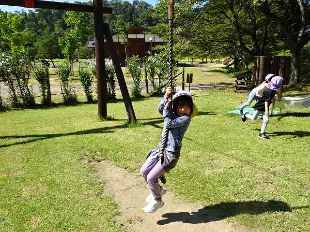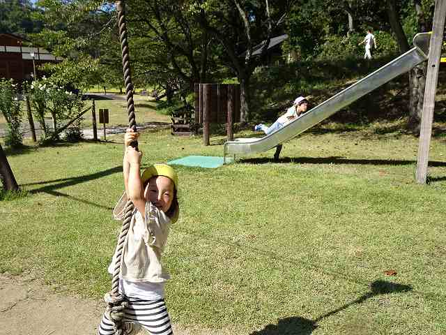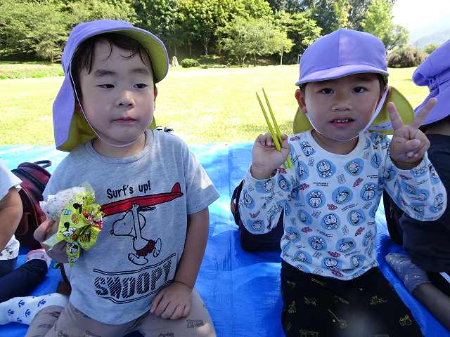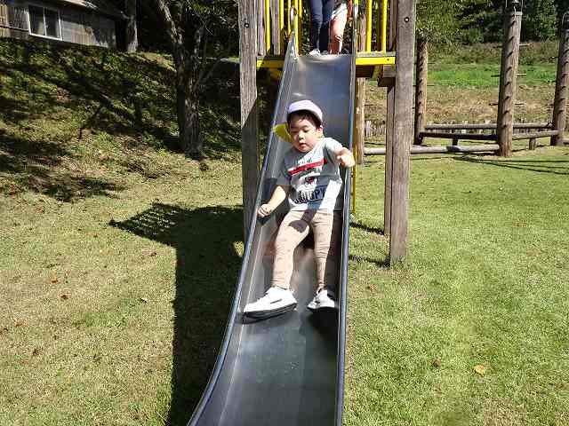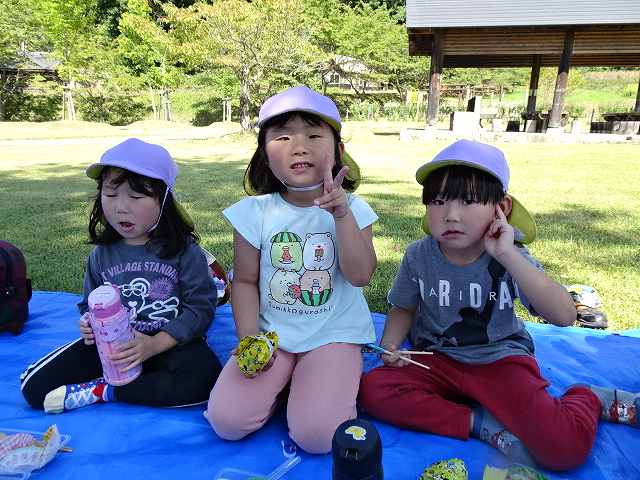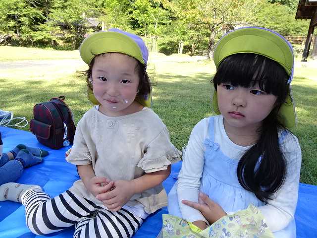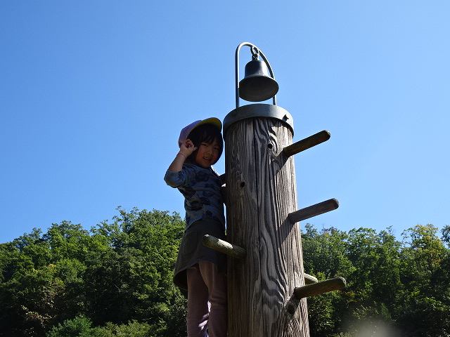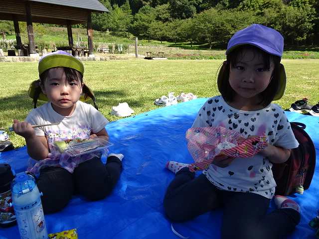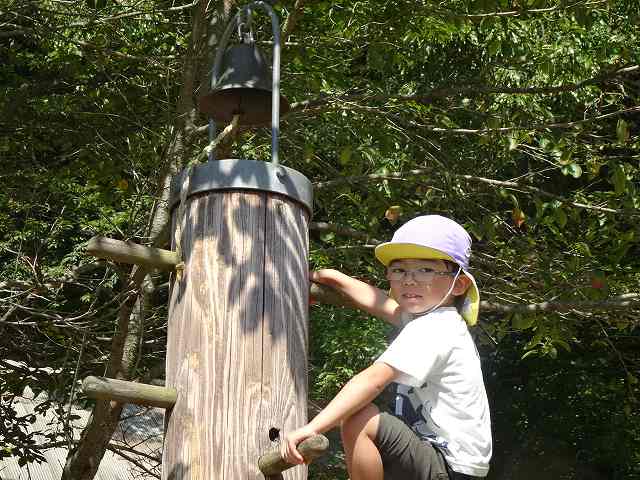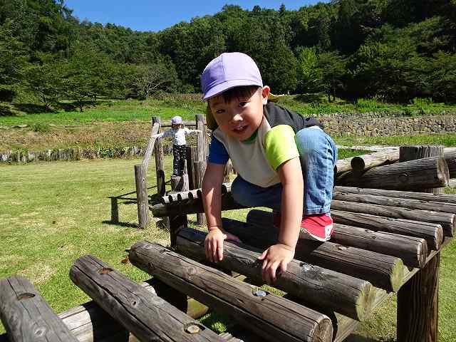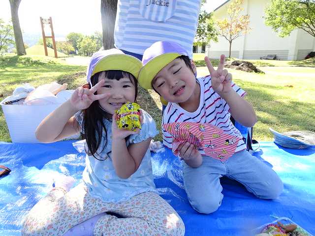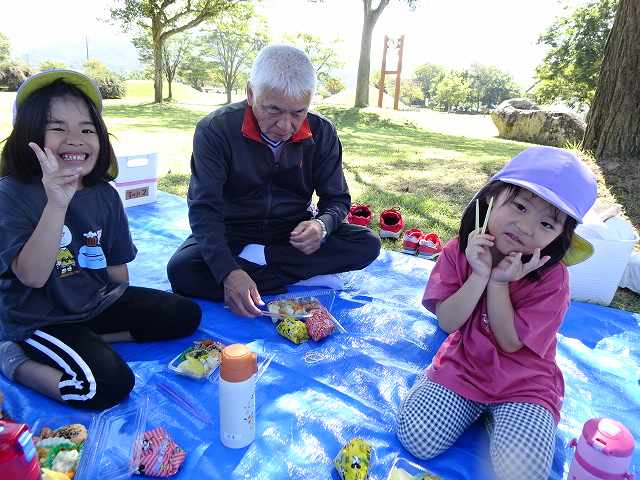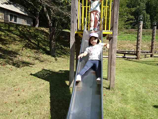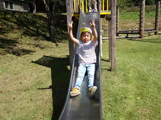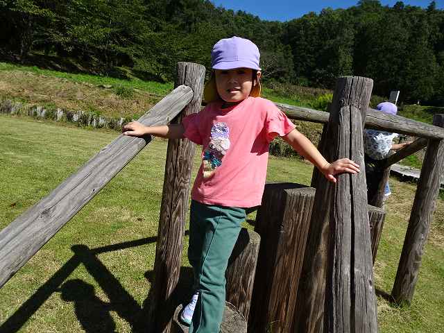 1日(火)高畠町のまほろばの里・歴史公園へ園外保育に行ってきました。散策の途中で縄文時代の家を見つけると興味津々の子ども達。ドキドキしながら薄暗い家の中に入りました。アスレチックでは体を動かしてたくさん遊びお腹もペコペコ。お昼は秋晴れの心地よい空の下、給食の先生が作ってくれたお弁当を美味しくいただきました!