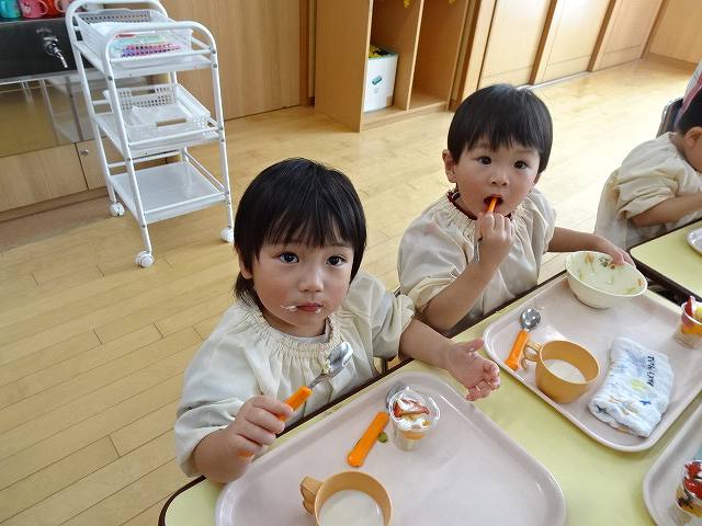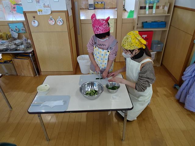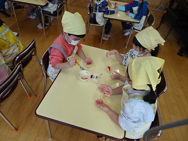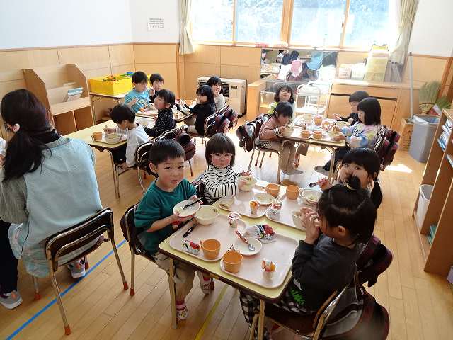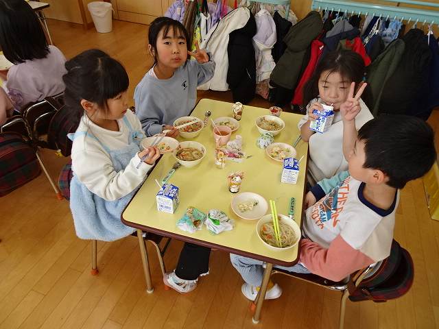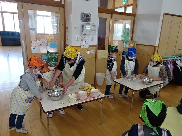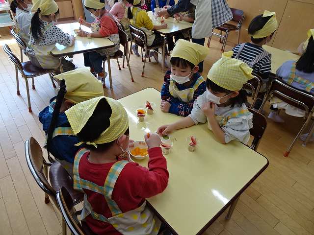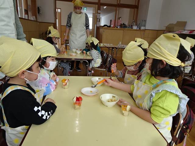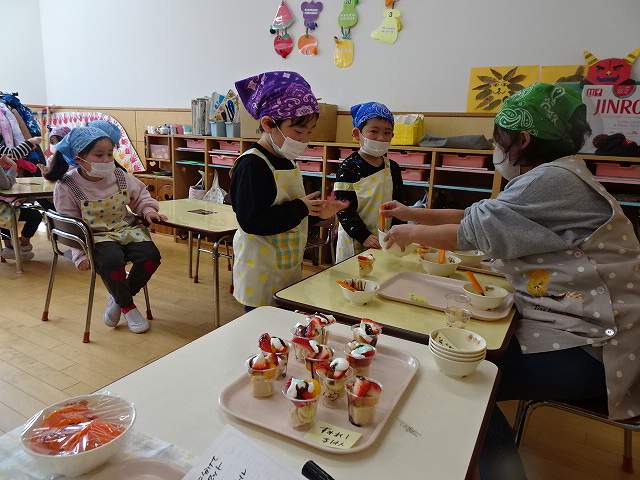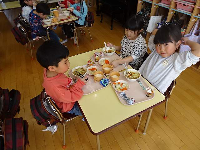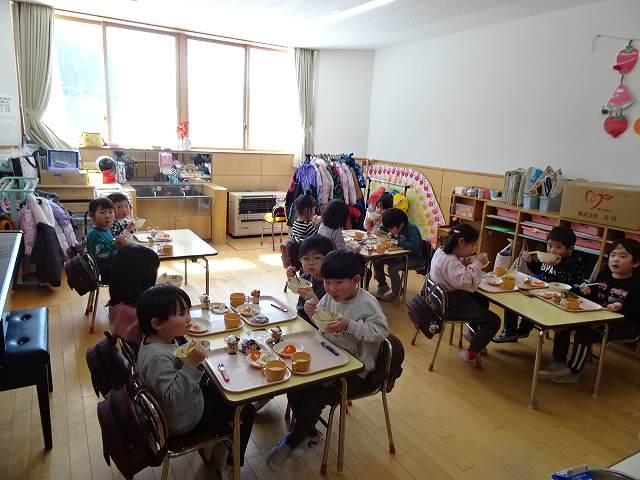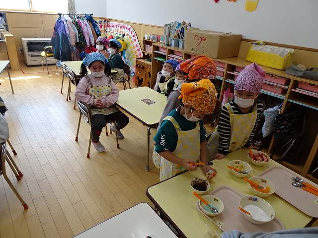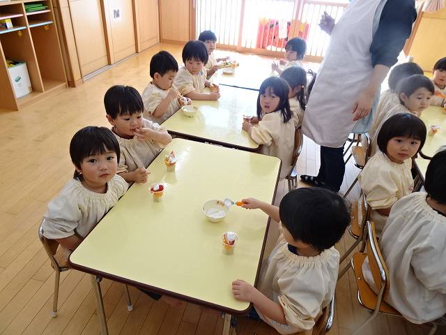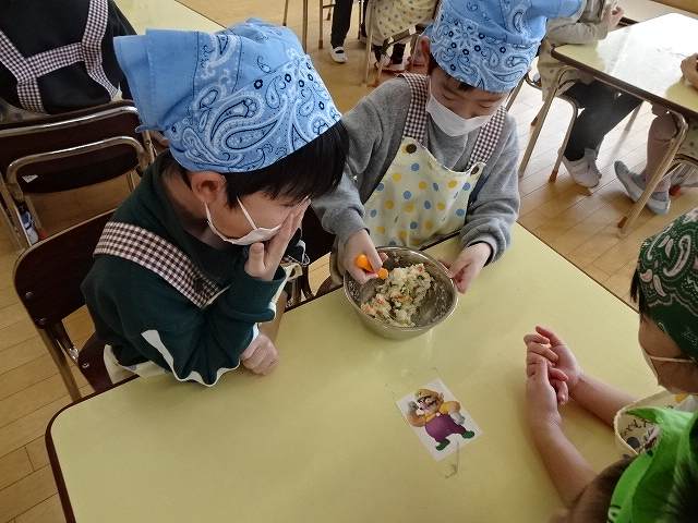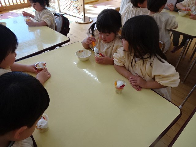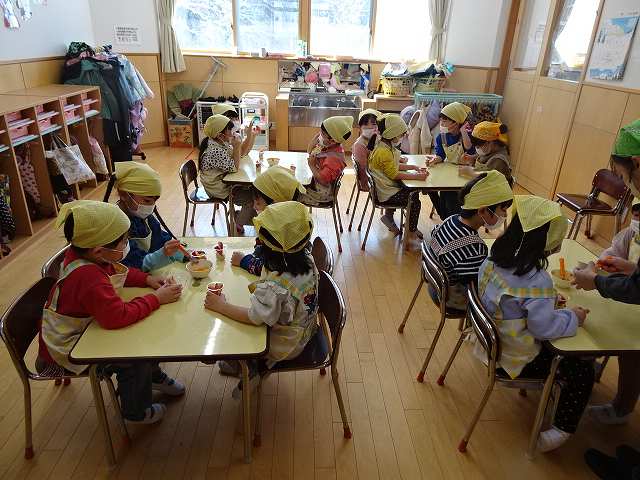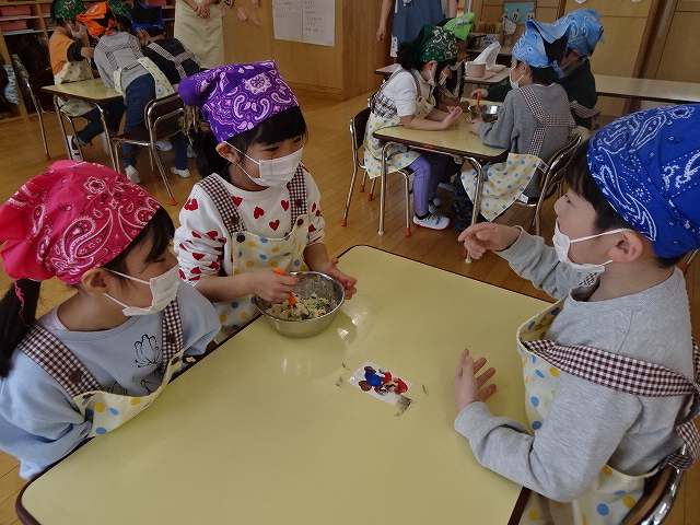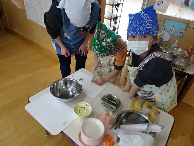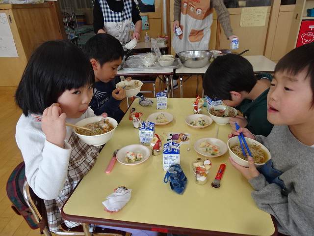 2月20日(木)ランチパーティがありました。メニューはふじ組さんリクエストのでしょうゆラーメン・ポテトサラダ・パフェ。ポテトサラダの野菜を切ったり、ジャガイモを潰したり、ふじ組さんはラーメンの湯切りにも挑戦!パフェの盛り付けも楽しかったね!みんなで作ると、美味しさも倍増!おかわりもたくさんしてお腹いっぱいの子ども達でした。