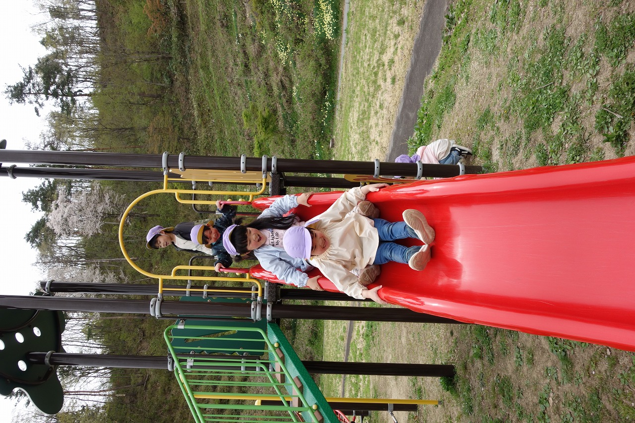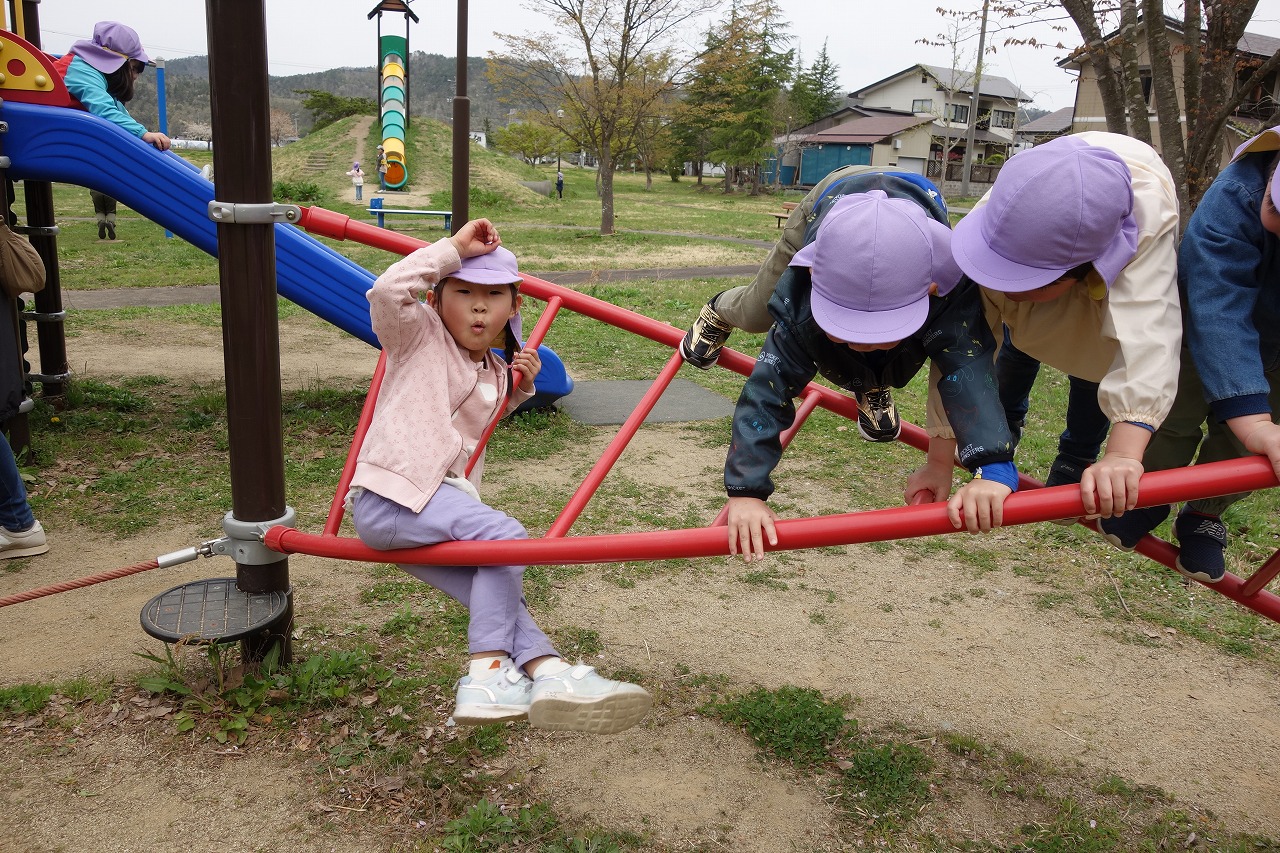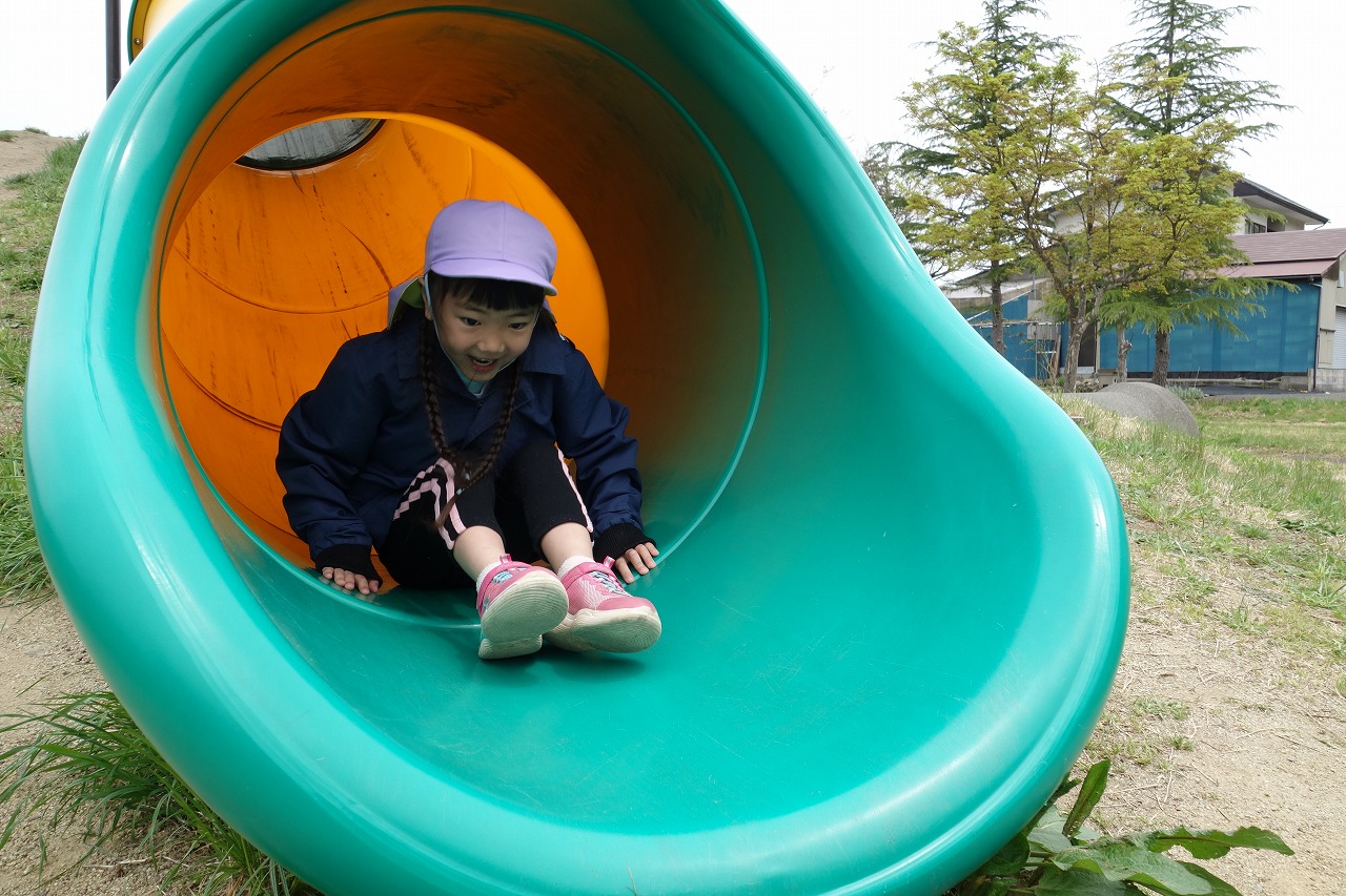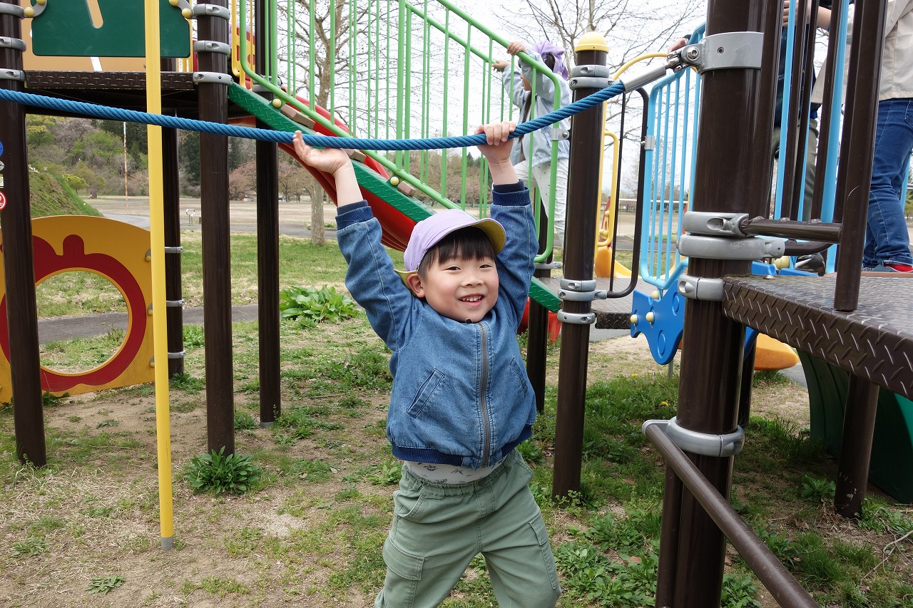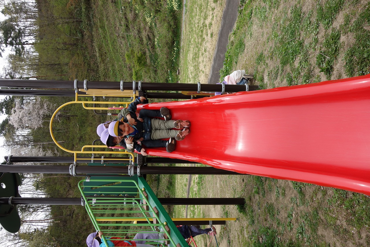 暖かな春の陽気の中、ふじ組さんで、安久津八幡神社に出かけました。気持ちよさそうに泳ぐたくさんのこいのぼりを見たり、竪穴住居を覗いて散策を楽しみました。その後は、歴史公園で遊ぶ予定だったのですが…何とペンキ塗り作業と重なってしまうというまさかの展開に…。気を取り直して、高畠中央公園に行こうと気合いを入れ、向かうことにしました。中央公園では、長い滑り台を滑ったり、ロープやはしご渡りをしたりと、たくさん体を動かして遊ぶことができました。子どもたちはここの公園をとても気に入ったようで、「また行きたい」と嬉しい声が聞こえてきました。お天気にも恵まれて楽しい思い出ができました。