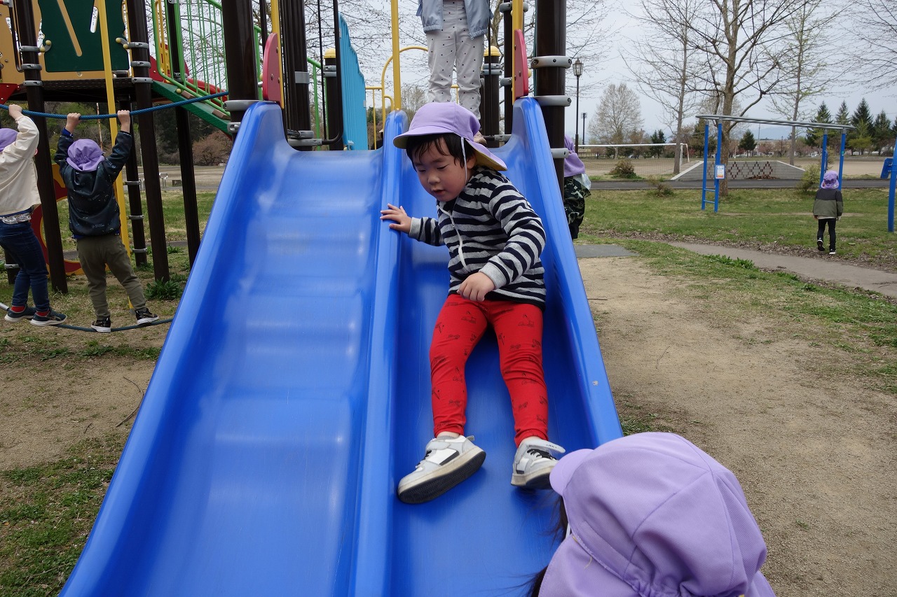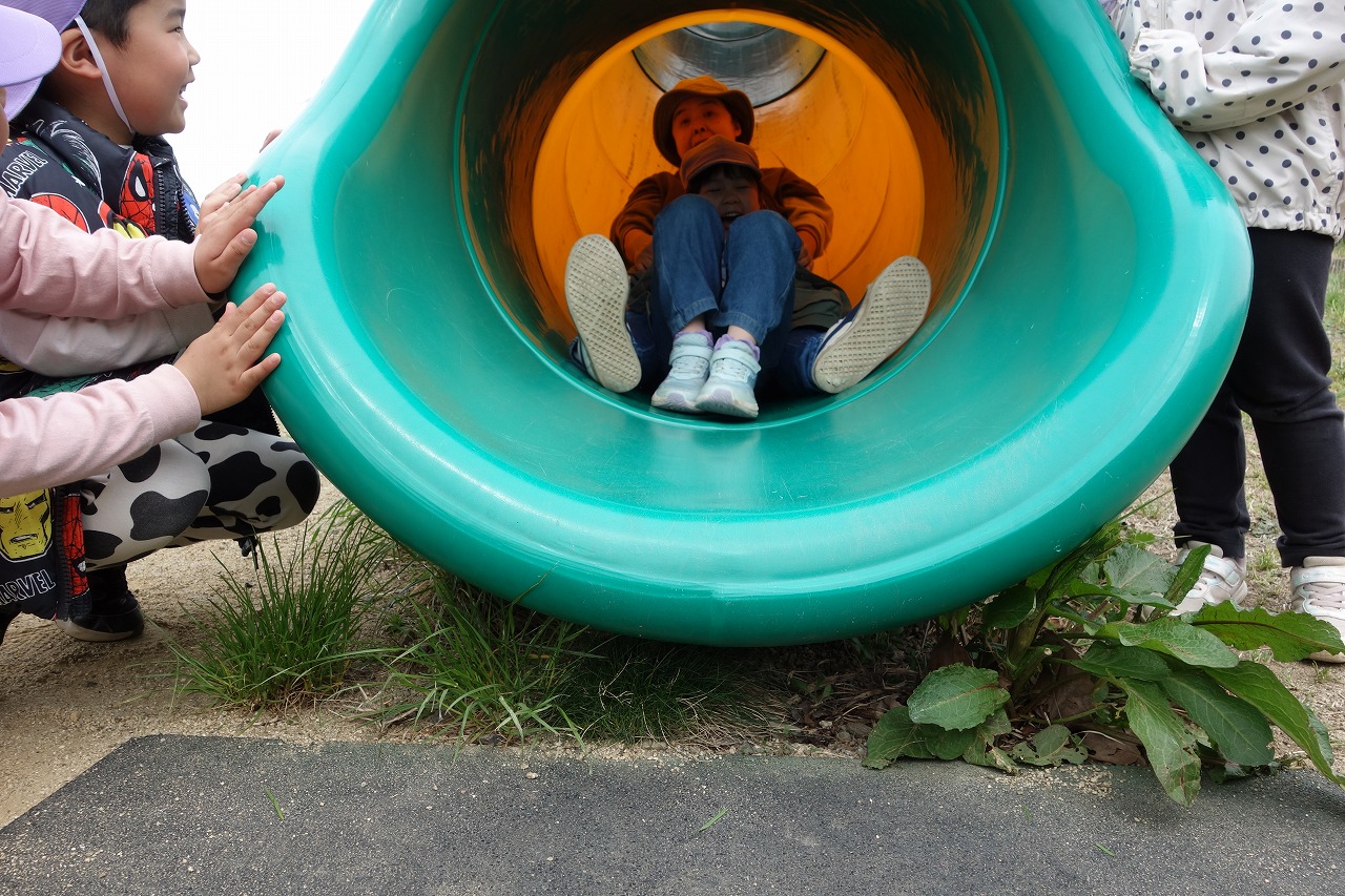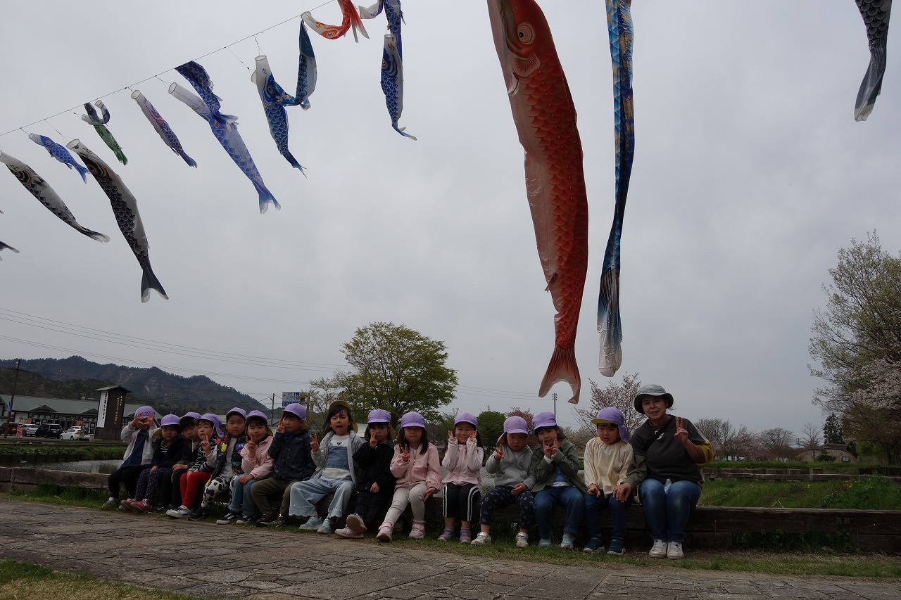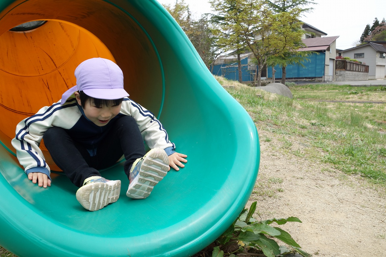 暖かな春の陽気の中、ふじ組さんで、安久津八幡神社に出かけました。気持ちよさそうに泳ぐたくさんのこいのぼりを見たり、竪穴住居を覗いて散策を楽しみました。その後は、歴史公園で遊ぶ予定だったのですが…何とペンキ塗り作業と重なってしまうというまさかの展開に…。気を取り直して、高畠中央公園に行こうと気合いを入れ、向かうことにしました。中央公園では、長い滑り台を滑ったり、ロープやはしご渡りをしたりと、たくさん体を動かして遊ぶことができました。子どもたちはここの公園をとても気に入ったようで、「また行きたい」と嬉しい声が聞こえてきました。お天気にも恵まれて楽しい思い出ができました。
