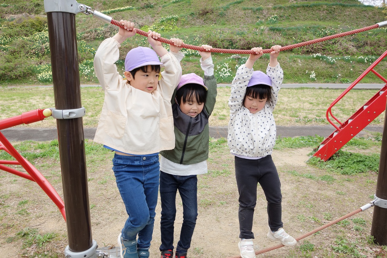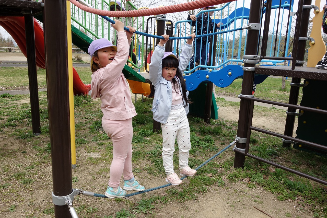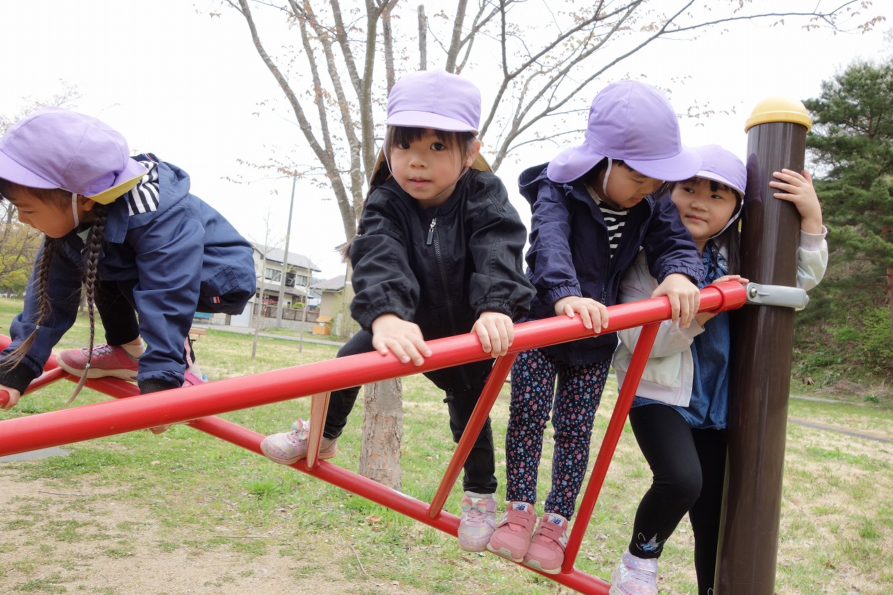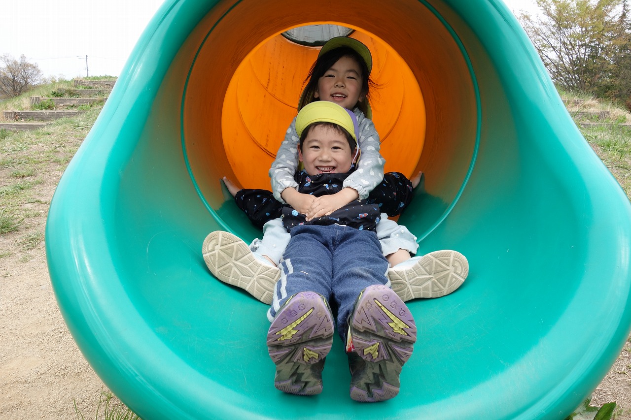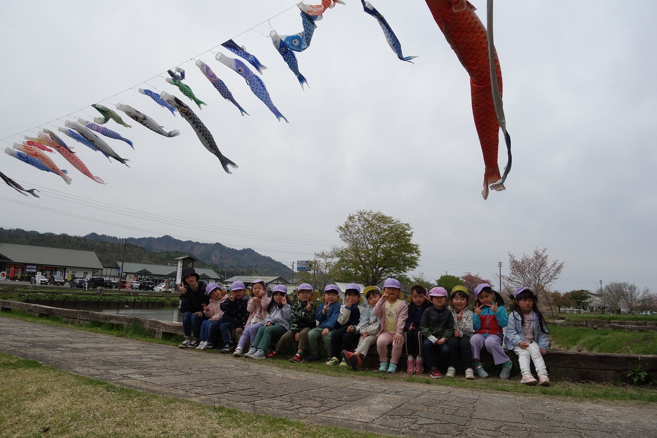 暖かな春の陽気の中、ふじ組さんで、安久津八幡神社に出かけました。気持ちよさそうに泳ぐたくさんのこいのぼりを見たり、竪穴住居を覗いて散策を楽しみました。その後は、歴史公園で遊ぶ予定だったのですが…何とペンキ塗り作業と重なってしまうというまさかの展開に…。気を取り直して、高畠中央公園に行こうと気合いを入れ、向かうことにしました。中央公園では、長い滑り台を滑ったり、ロープやはしご渡りをしたりと、たくさん体を動かして遊ぶことができました。子どもたちはここの公園をとても気に入ったようで、「また行きたい」と嬉しい声が聞こえてきました。お天気にも恵まれて楽しい思い出ができました。