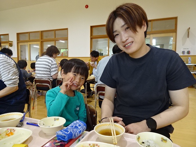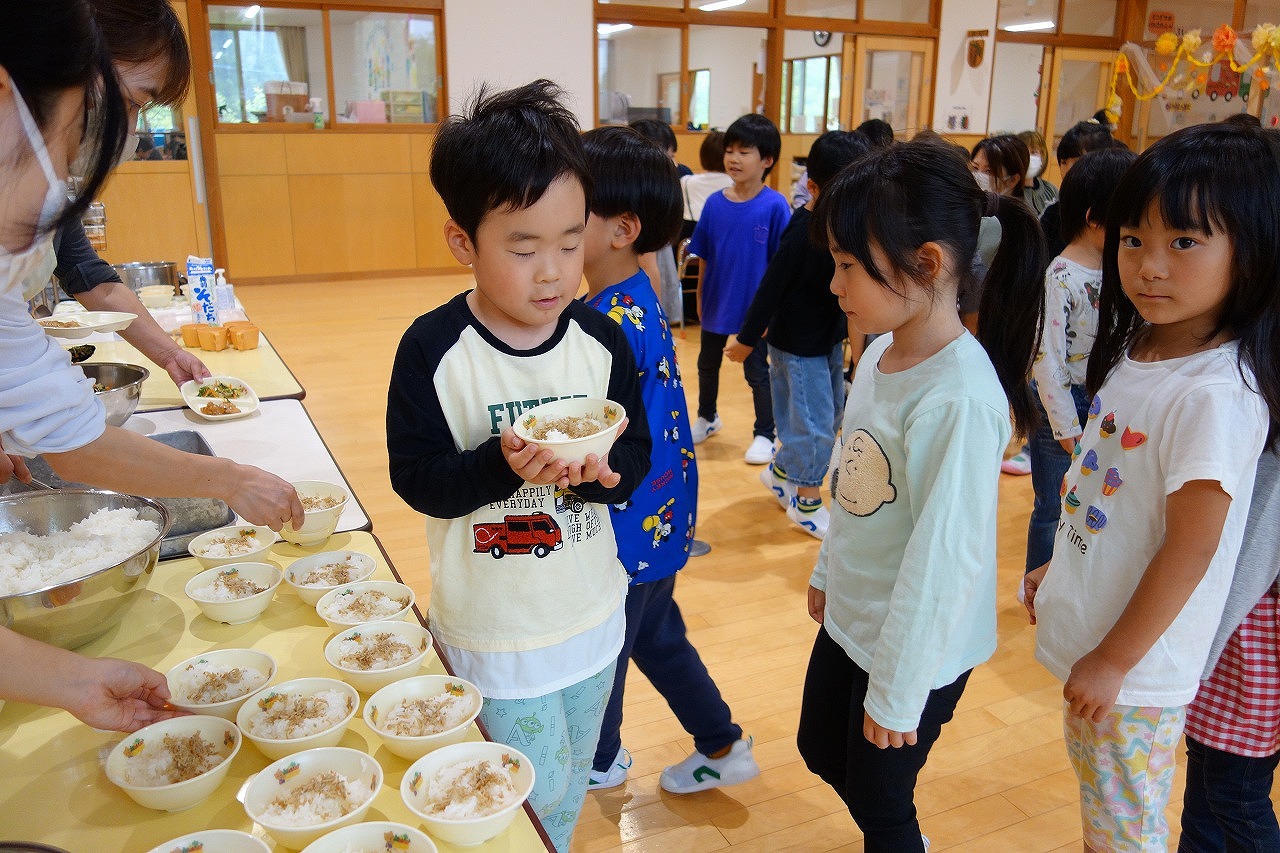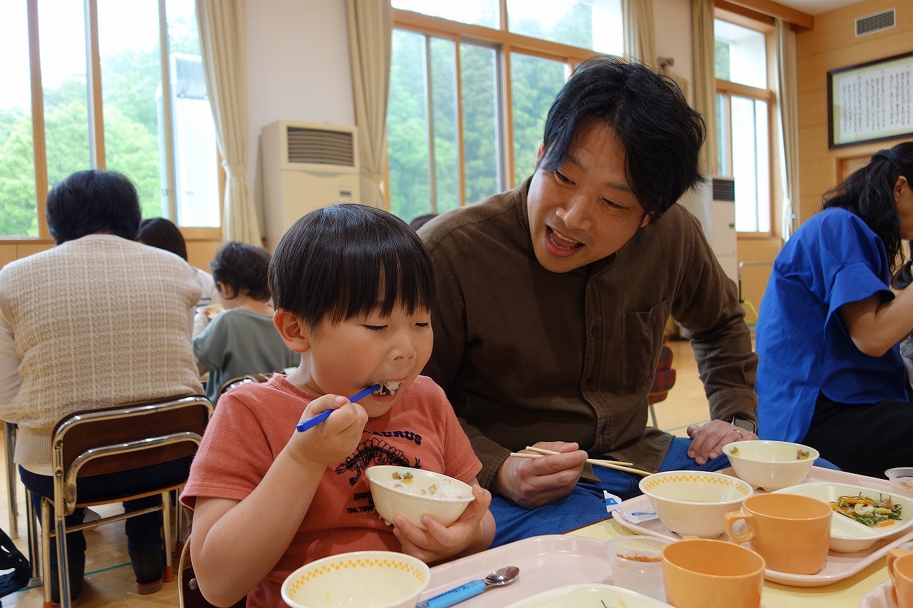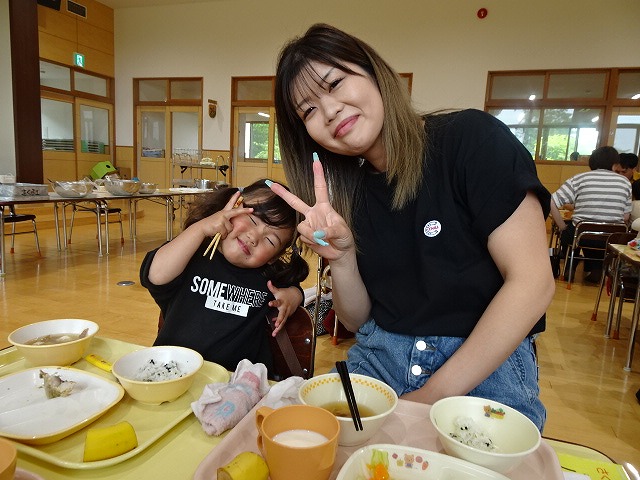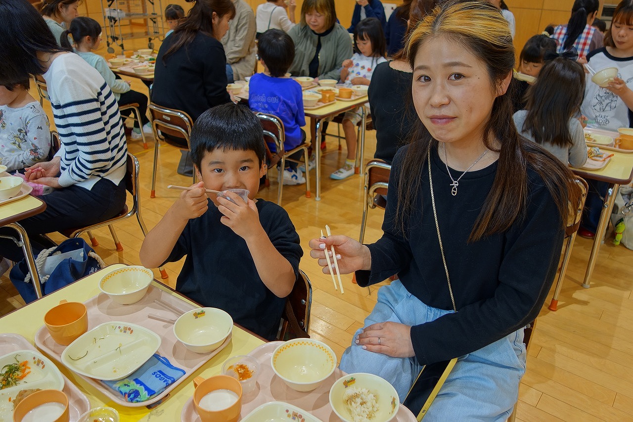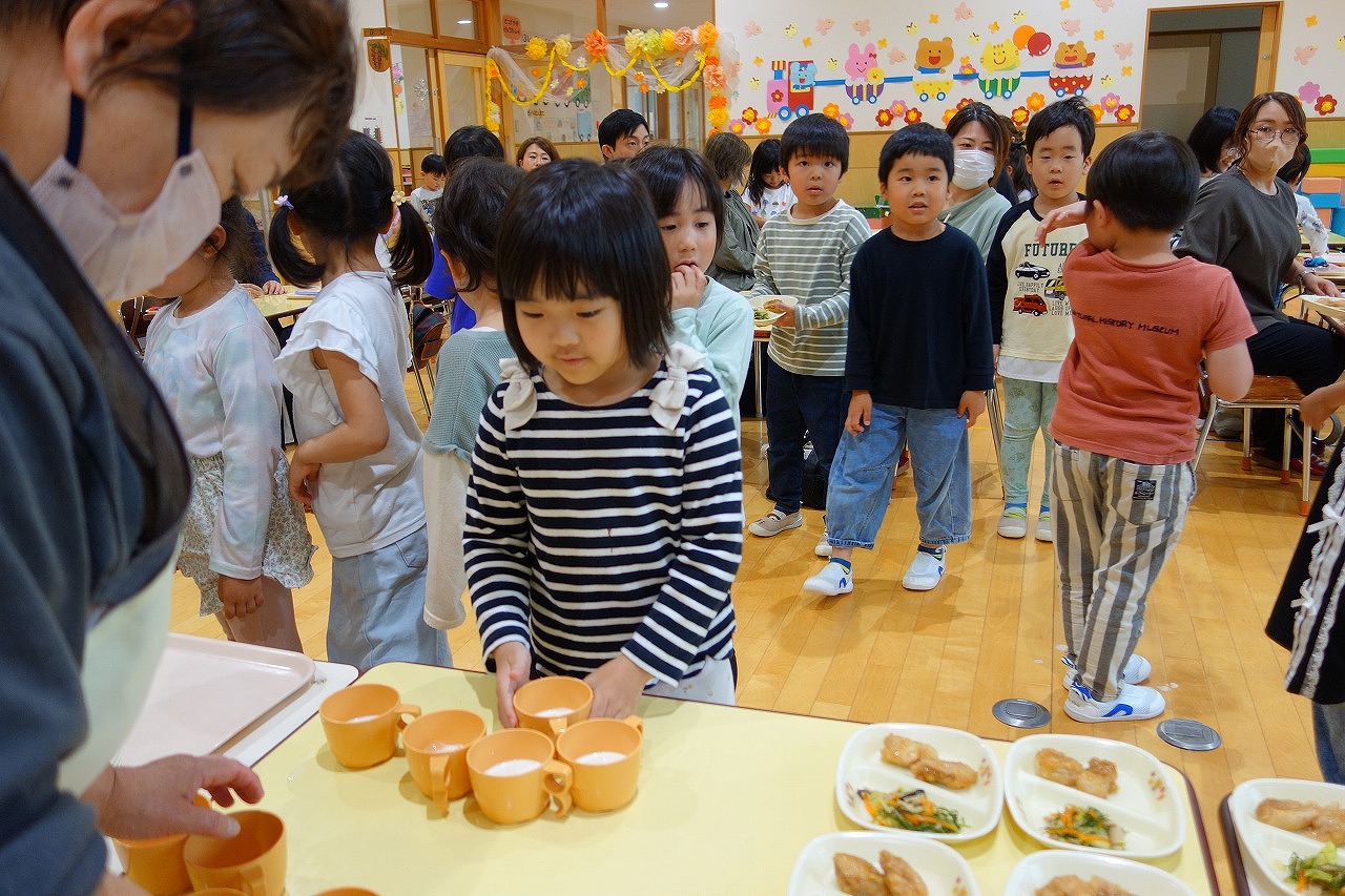 5月20日(火)にふじ組、27日(火)にすみれ組、6月3日(火)にさくら組と、給食試食会を行いました。お家の方と一緒に給食を食べられることをとても楽しみにして待っていた子どもたちは、お母さんやお父さん、おばあちゃんと顔を合わせると、ニコッと笑顔になりとても嬉しそうでした。給食の先生の話に耳を傾け、質問に答えながら食事の大切さを知ったり、お家の方にも園での給食の様子を知って頂くことができたのではないかと思います。お家の方と一緒に食べる給食は格別で、いつも以上に美味しく食べられたようでした。後日頂いたアンケートでもたくさんの良いご意見・ご感想を頂きありがとうございました。励みにしながら、これからの食育活動にも力を入れていきたいと思います。