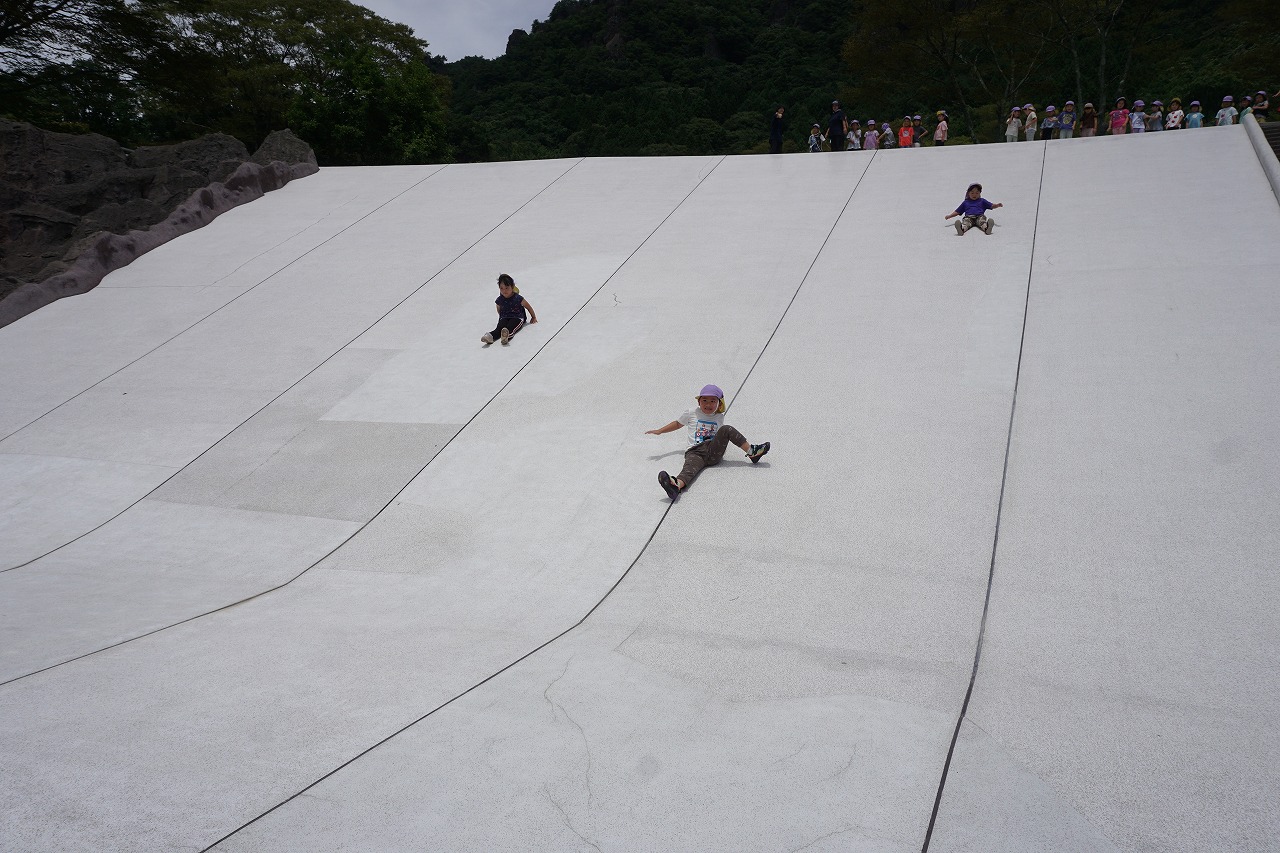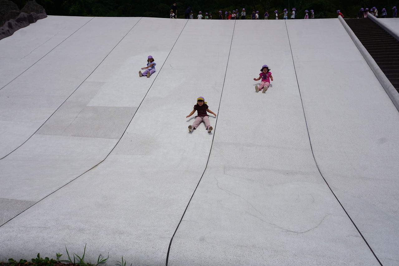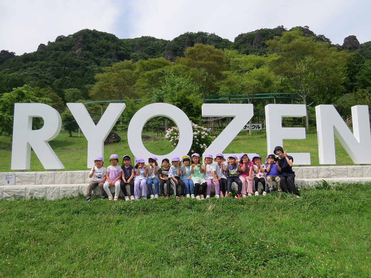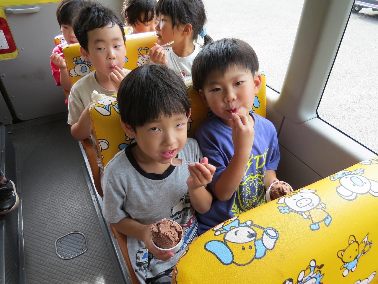 7月18日(金)~19日(土)にかけて、年長さんのお泊り保育を行いました。誰一人体調を崩すことなく元気に当日を迎え、ドキドキ・ワクワクお泊り保育のスタートです。始まりの会をした後は、早速バスに乗って、福島県にある霊山こどもの村へ出発!こどもの村に着くと、まずワークショップでオリジナルトートバッグ作りを楽しみました。ペンとエタノールを使って花火を描き、世界に一つだけの素敵なバッグが完成しました。その後は、大きな広い滑り台を繰り返し滑り楽しみ、お弁当を食べてひと休み。午後はグループごとにサイクル列車に乗り、ペダルをこぎスピードに乗って駆け抜けることに大喜びでした!こどもの村の後は、入浴施設のお風呂に入って汗を流し、ジェラート屋さんで好きなアイスを食べて帰ってきました。