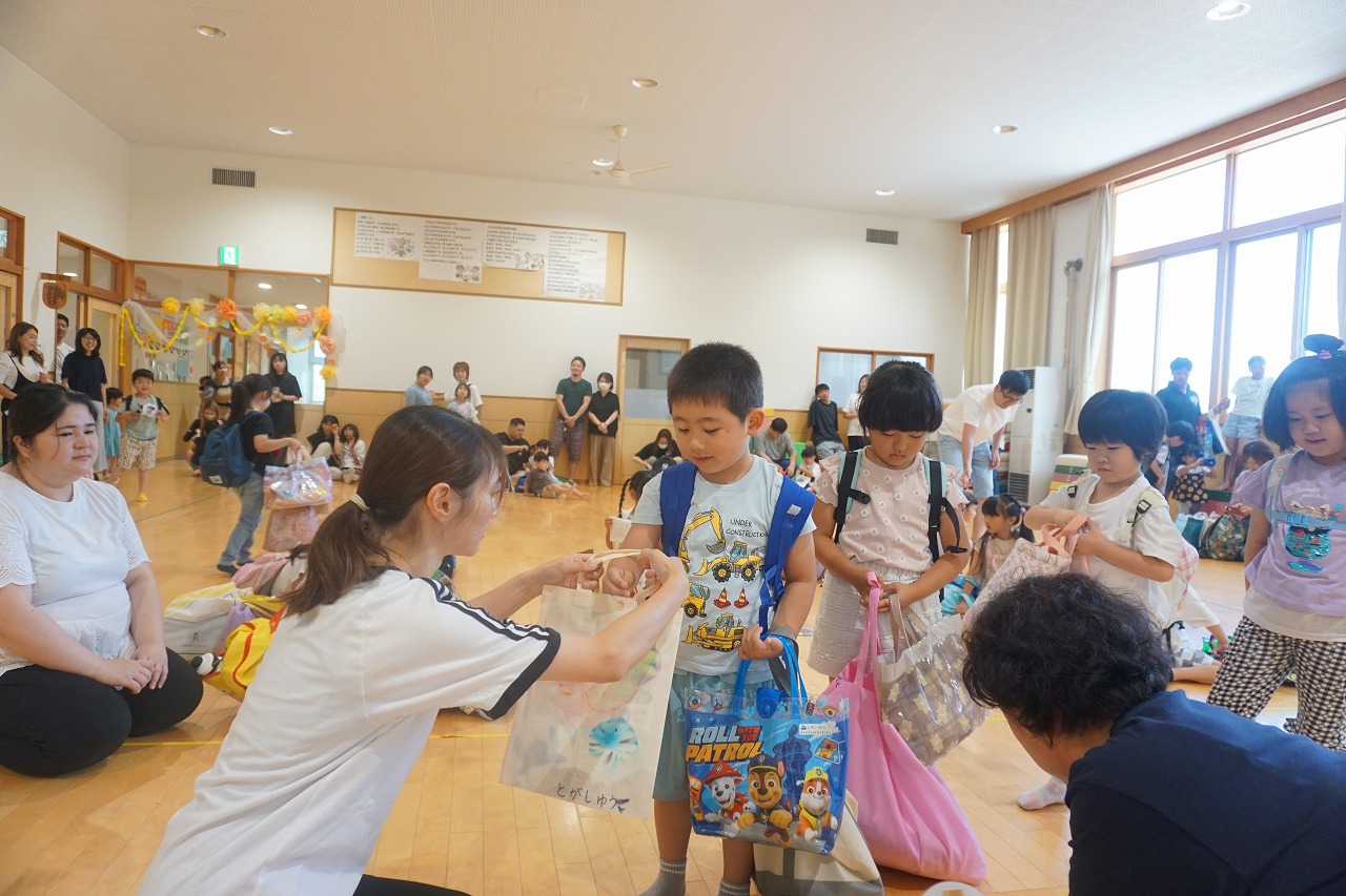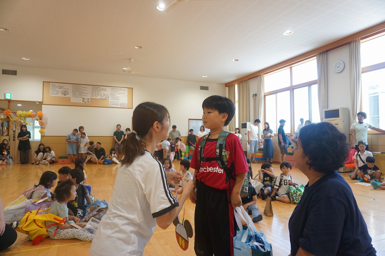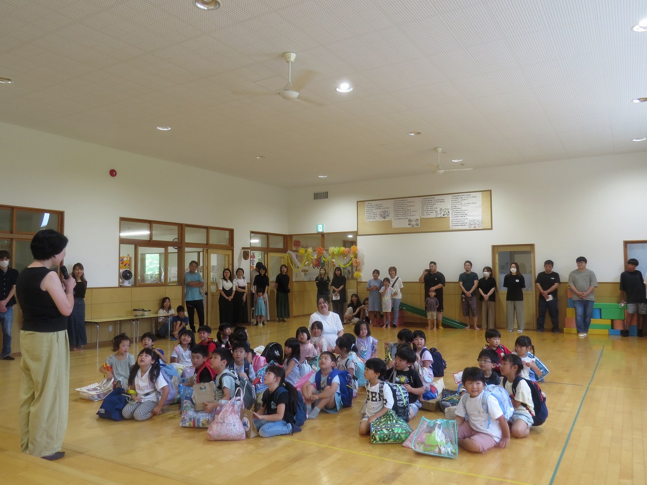 朝を迎え、起床後は朝ごはんを食べて身支度を整え、帰り会を行いました。お泊り保育の全日程を終え、無事にお家の方の元へとお引き渡しすることができました。