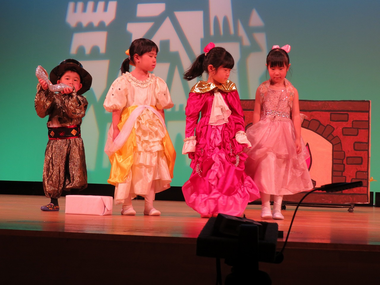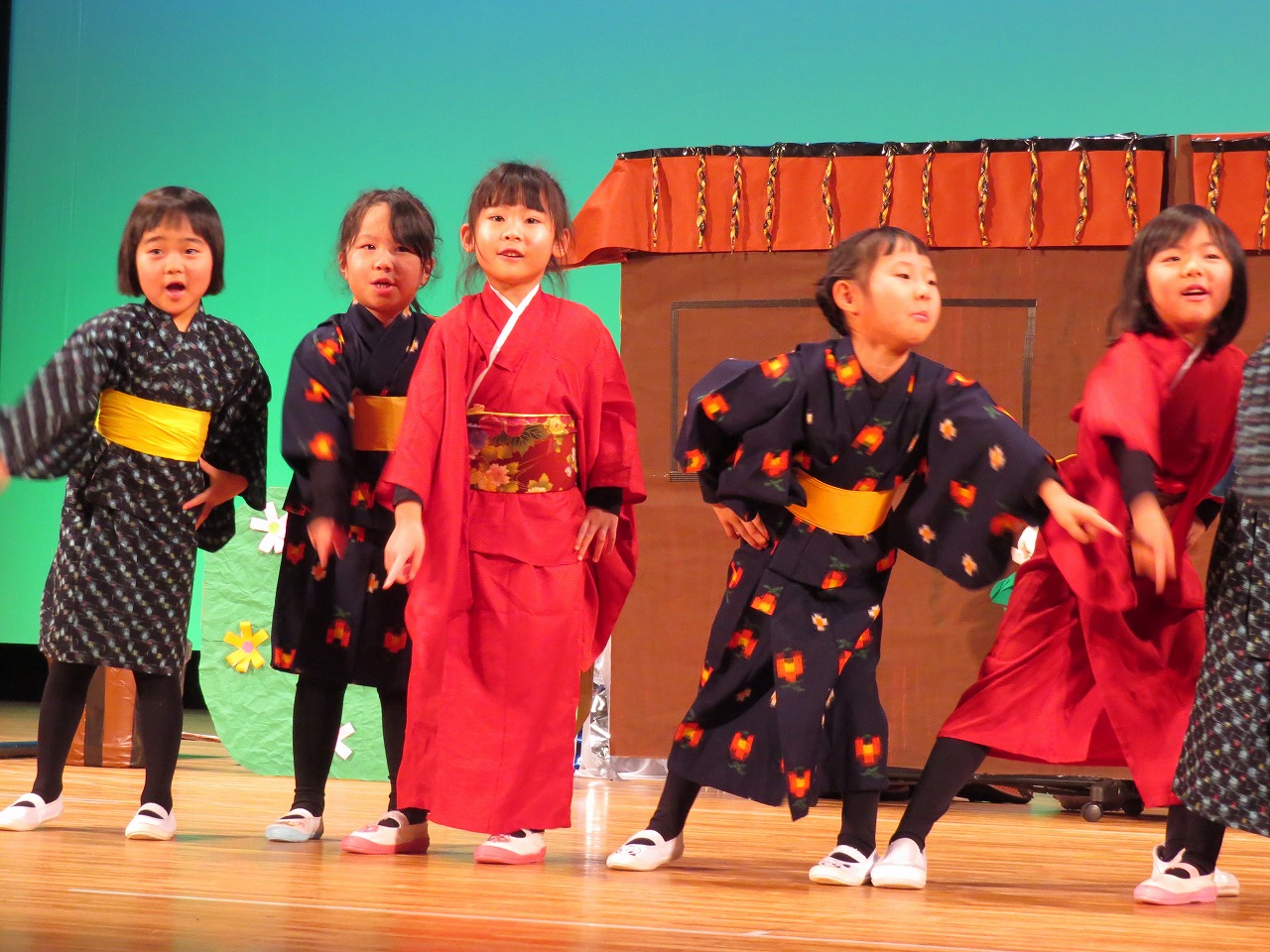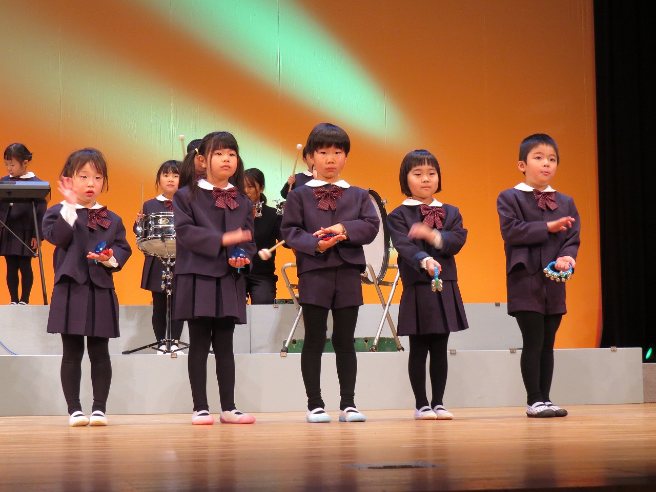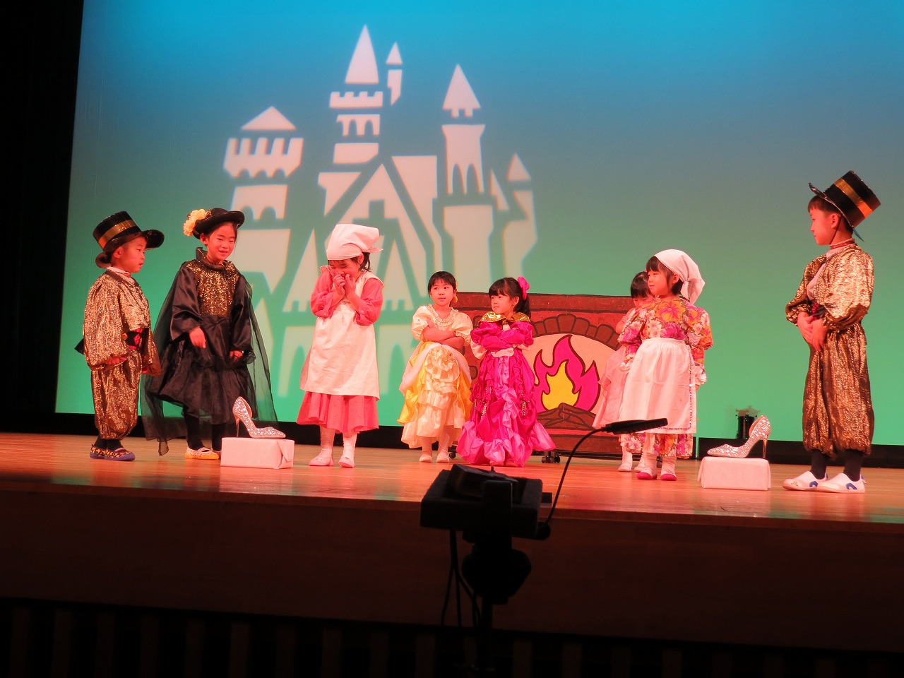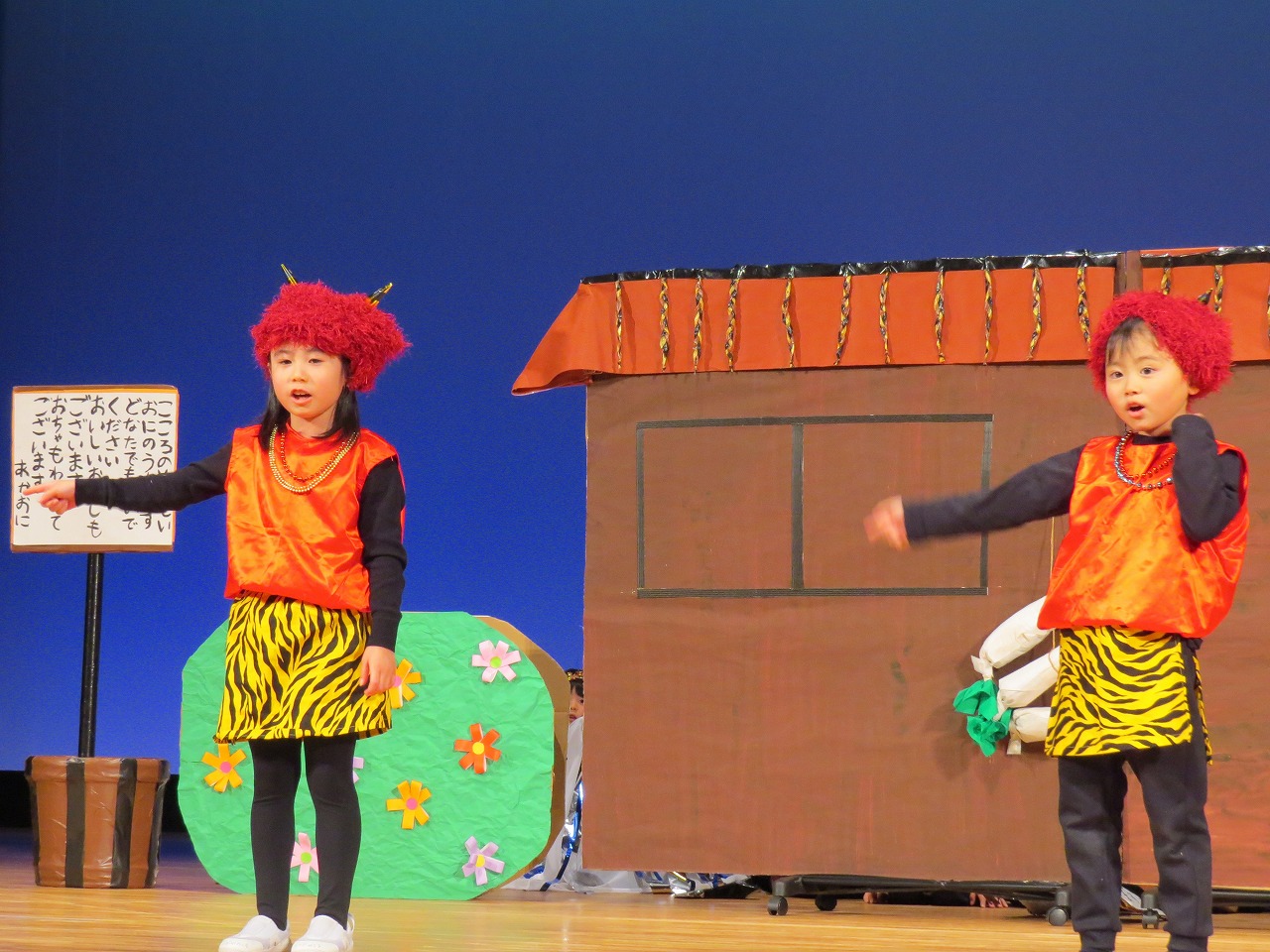 12月18日(木)は発表会を行いました。今年一年こどもたちが頑張ってきたことを保護者の方にも見て頂けるよう、それぞれのクラスが工夫しながら取り組んできました。さくら組さんは合奏や歌、オペレッタ「おむすびころりん」に挑戦!すみれ組さんは鼓隊演奏とミュージカル「シンデレラ」に挑戦しました。そして、ふじ組さんはアンサンブル奏「ディズニーメドレー」と劇「泣いたあかおに」を年長児らしく発表してくれました!本番の舞台裏では、「緊張するー」とドキドキする子どもたちの様子が見られましたが、いざ舞台の上に立つと、みんな一生懸命に笑顔で演じることができました!発表が終わると「楽しかったー!!」という声がたくさん聞こえ、達成感や喜びを感じ、大きな自信へと繋がったようです。「また発表会やりたい!」という子もいた程、一人ひとり輝くことができました。