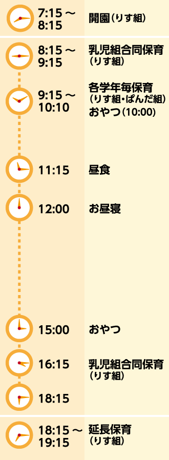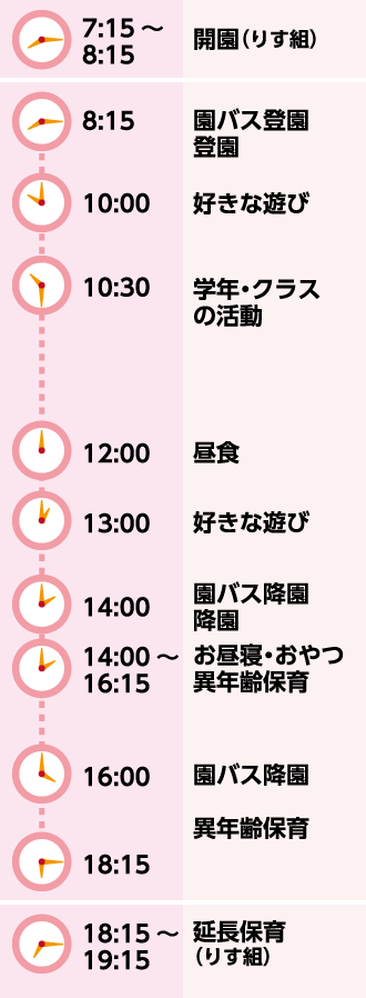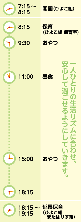 ※2.保育短時間のお子さんは16:15 より、保育標準時間のお子さんは18:15 より延長保育となります。